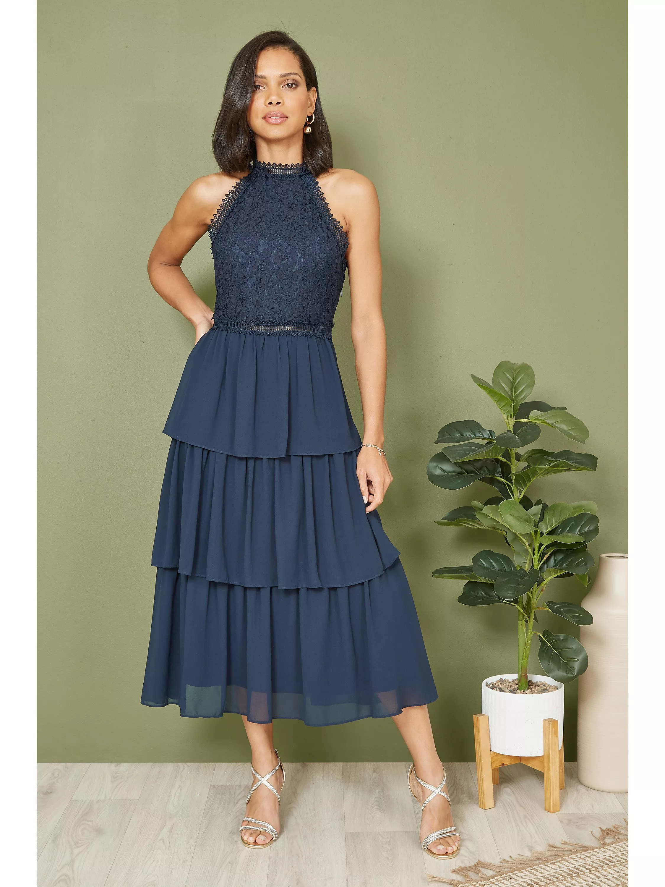 If you have weddings to RSVP to this season - let us introduce this gorgeous halter neck dress from Yumi. The intricate lace bodice is elegant and chic, and the tiered ruffles on the skirt, that land in midi length hemline add just a touch of drama. Style with simple accessories and wait for the compliments to roll in.