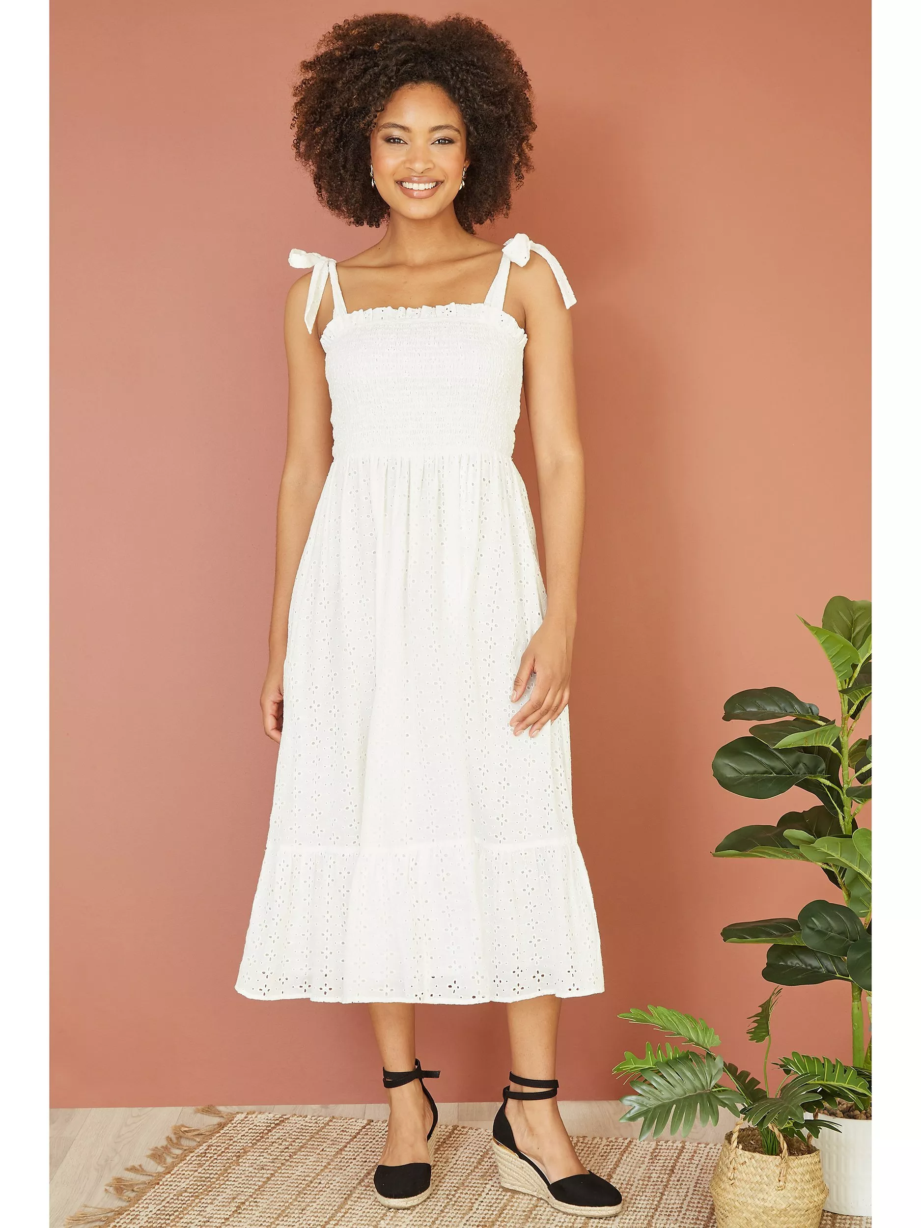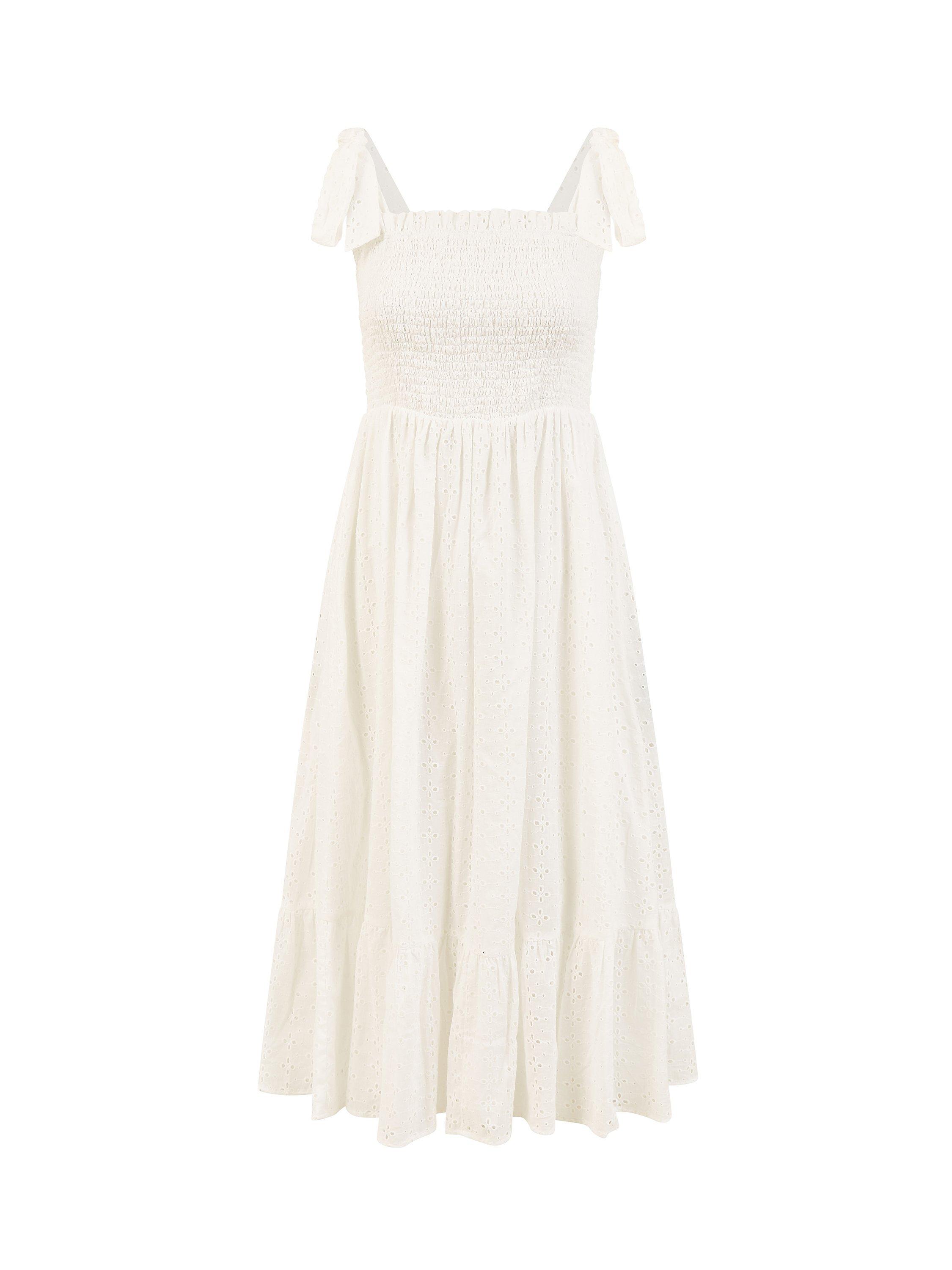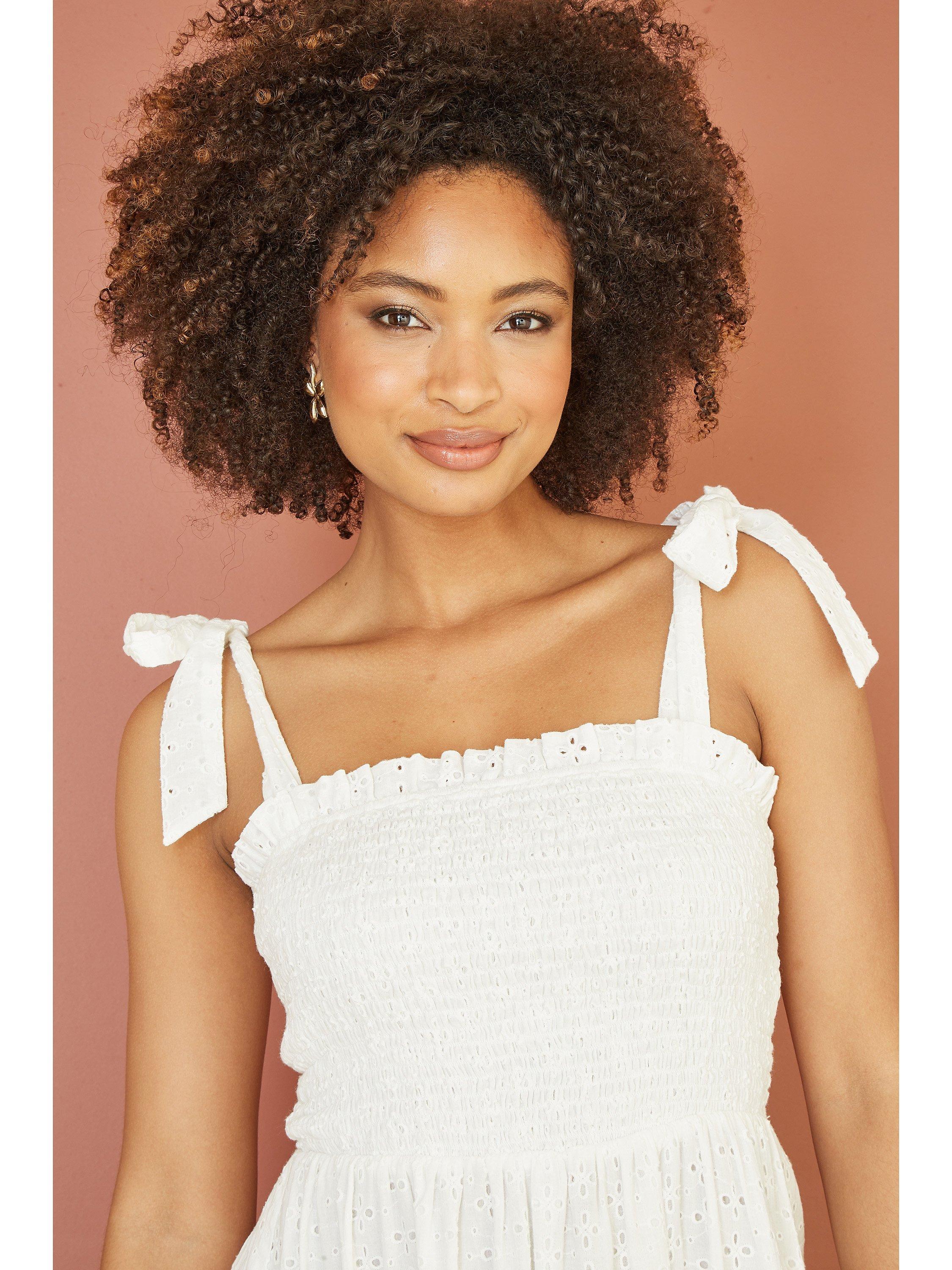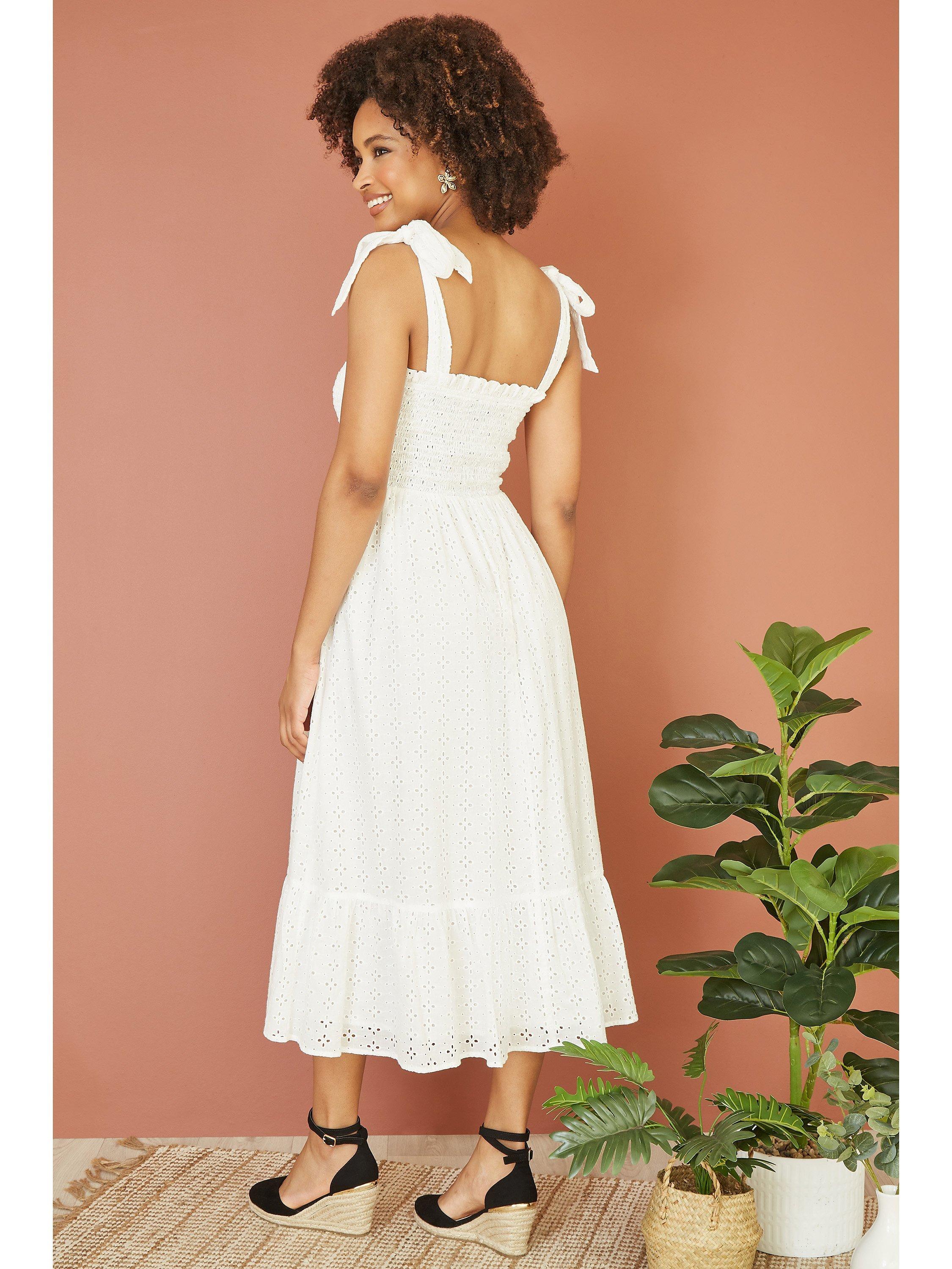Constructed with a nipped in waist and flared hem, this mid-length dress from Mela London is whipped up from cotton. Featuring a contemporary square neckline, this sleeveless style is detailed with sheer lace.