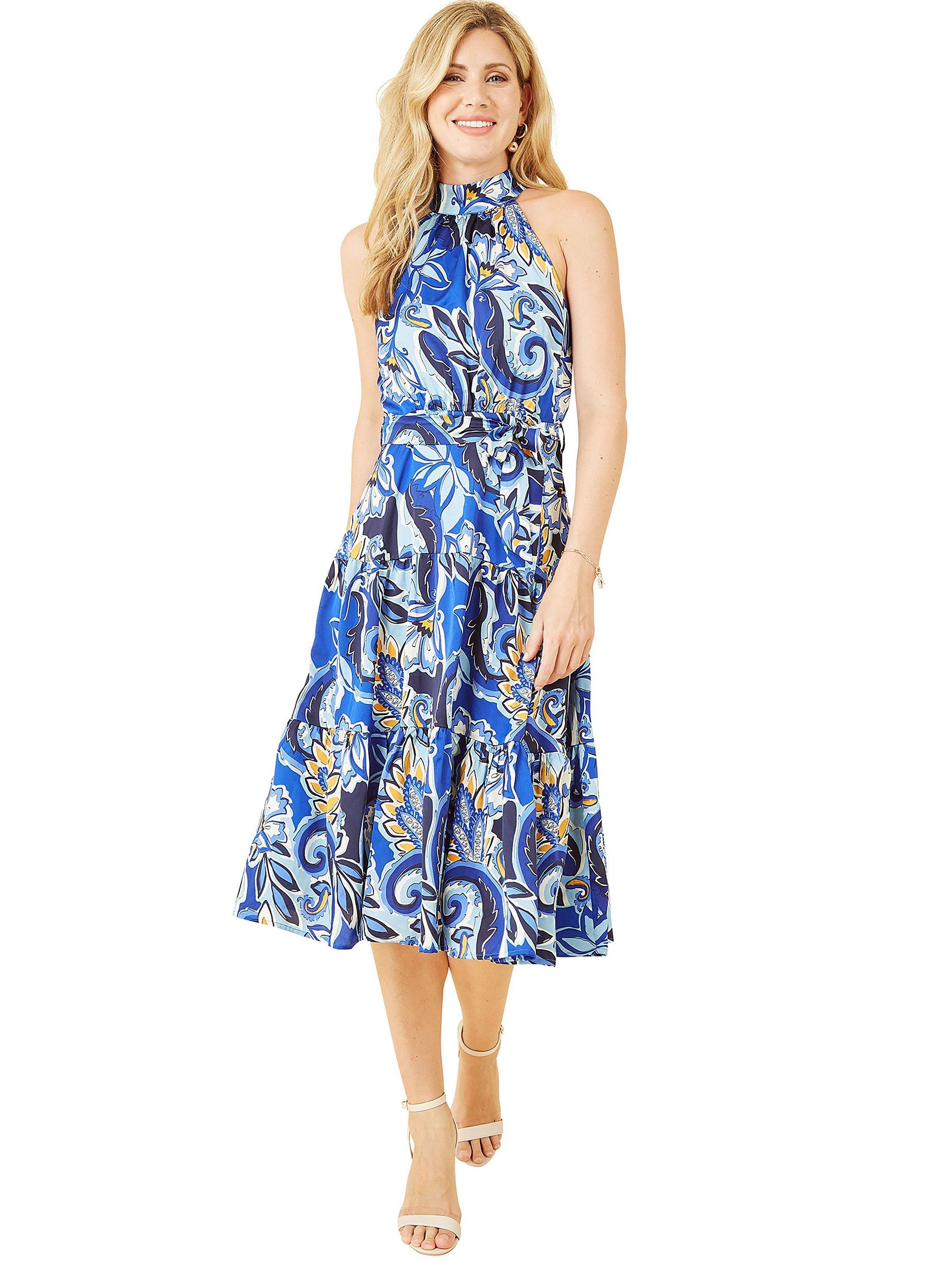 In a tiered A-line silhouette, this mid-length dress from Mela London comes made in a durable, synthetic fabric. With a neat halter neck, this sleeveless style is decorated with an abstract paisley print.