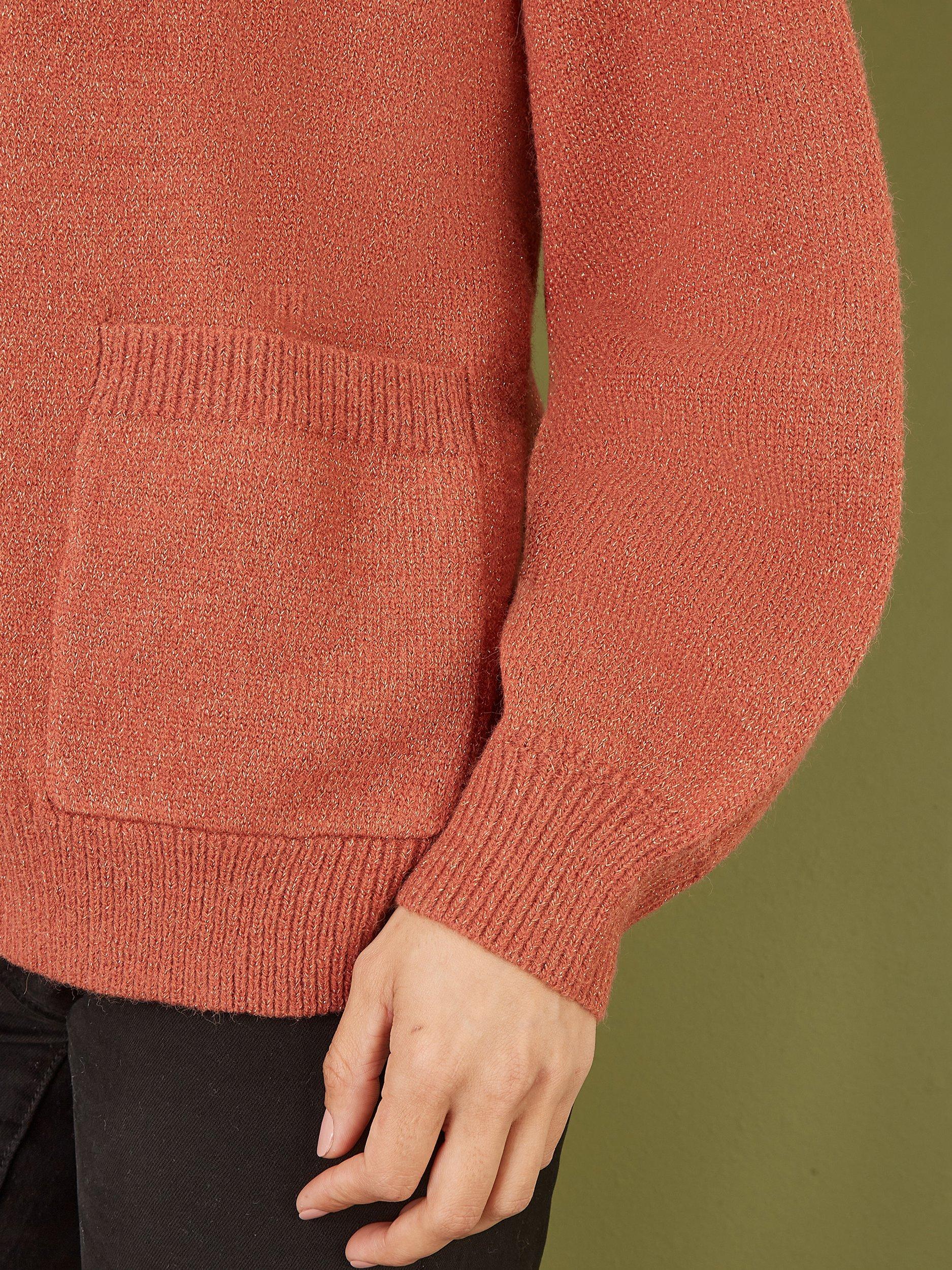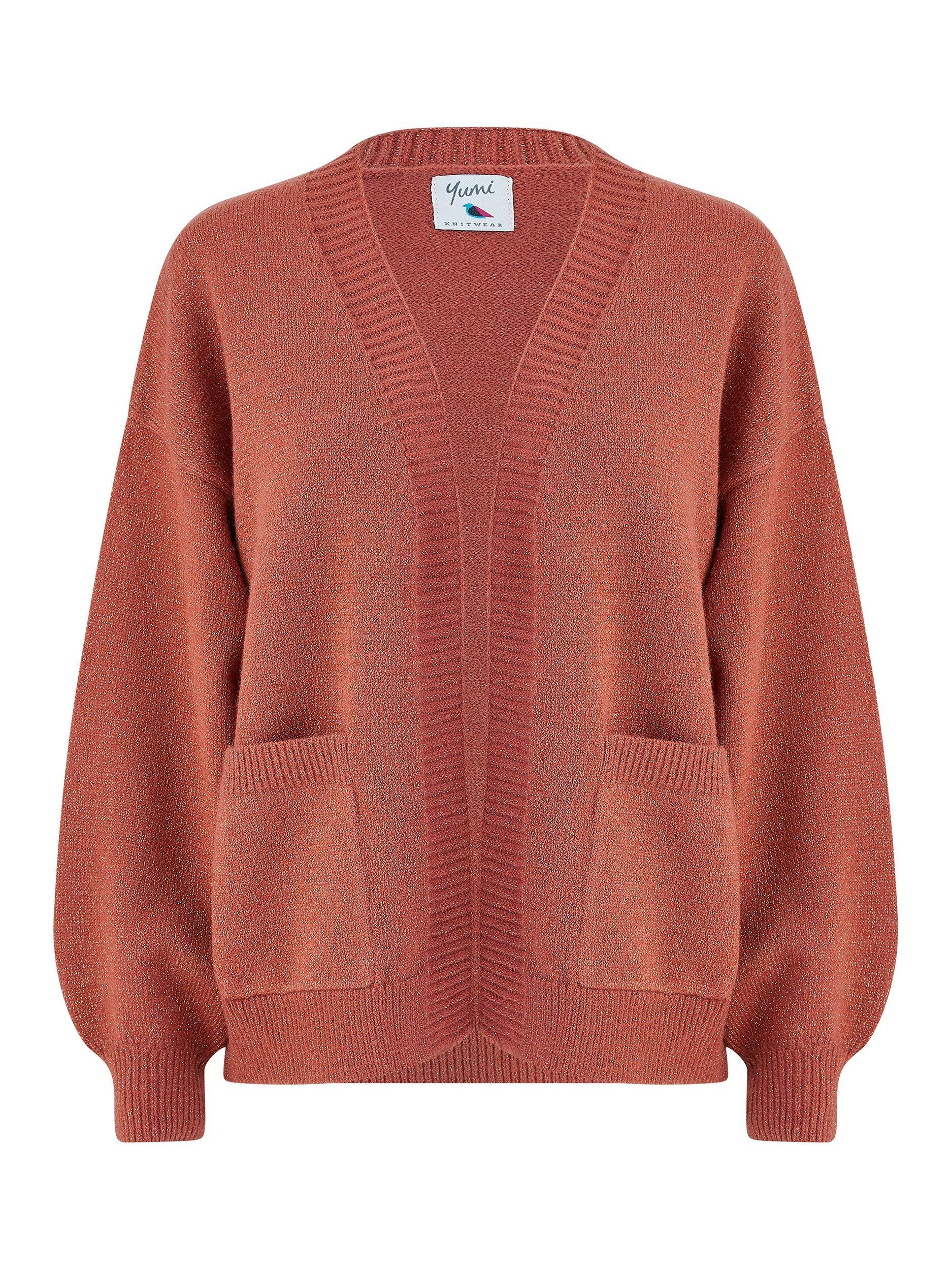 Pumpkin spice season is here, and this cardigan embodies the autumn vibes. With a simple slouchy edge to edge design that can be worn with jeans and trainers for a cool fit. The pockets and puffed sleeves really make this a knitwear piece you'll reach for again and again.