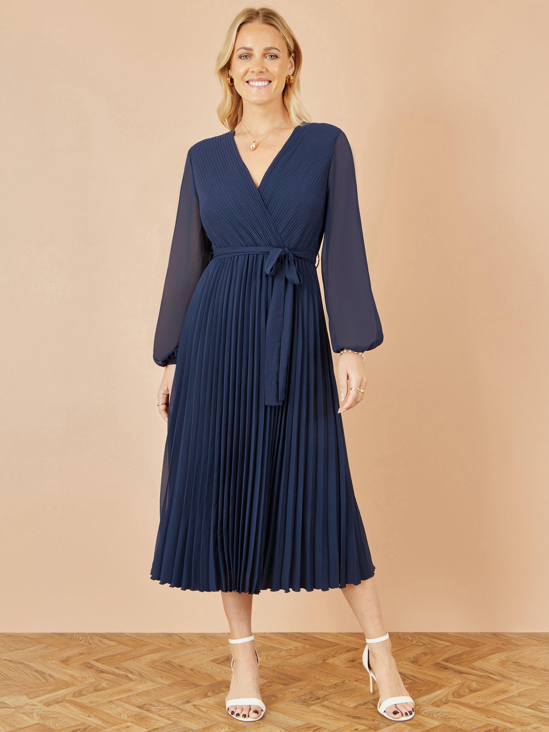 This gorgeous pleated midi dress is perfection for the party season. In a skater, wrap-over style with a cinched waist and pleats throughout. The sheer long sleeves are gorgeous for the winter months. We love this for a winter wedding, paired with gold accessories for a luxurious feel.