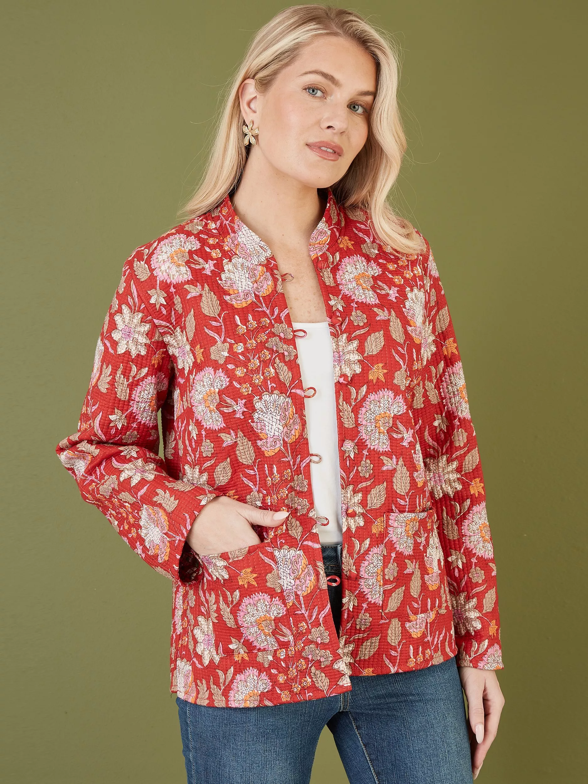 For bang on trend outerwear for the summer we love this floral quilted jacket from Yumi. Made using a traditional quilting technique, from lightweight cotton, this reversible garment really is a show stopper. With a different unique print on the inside, the tags and care labels are sewn into the pockets so you can change your look easily. Pair with jeans and a T-shirt for an off duty look, or 2!