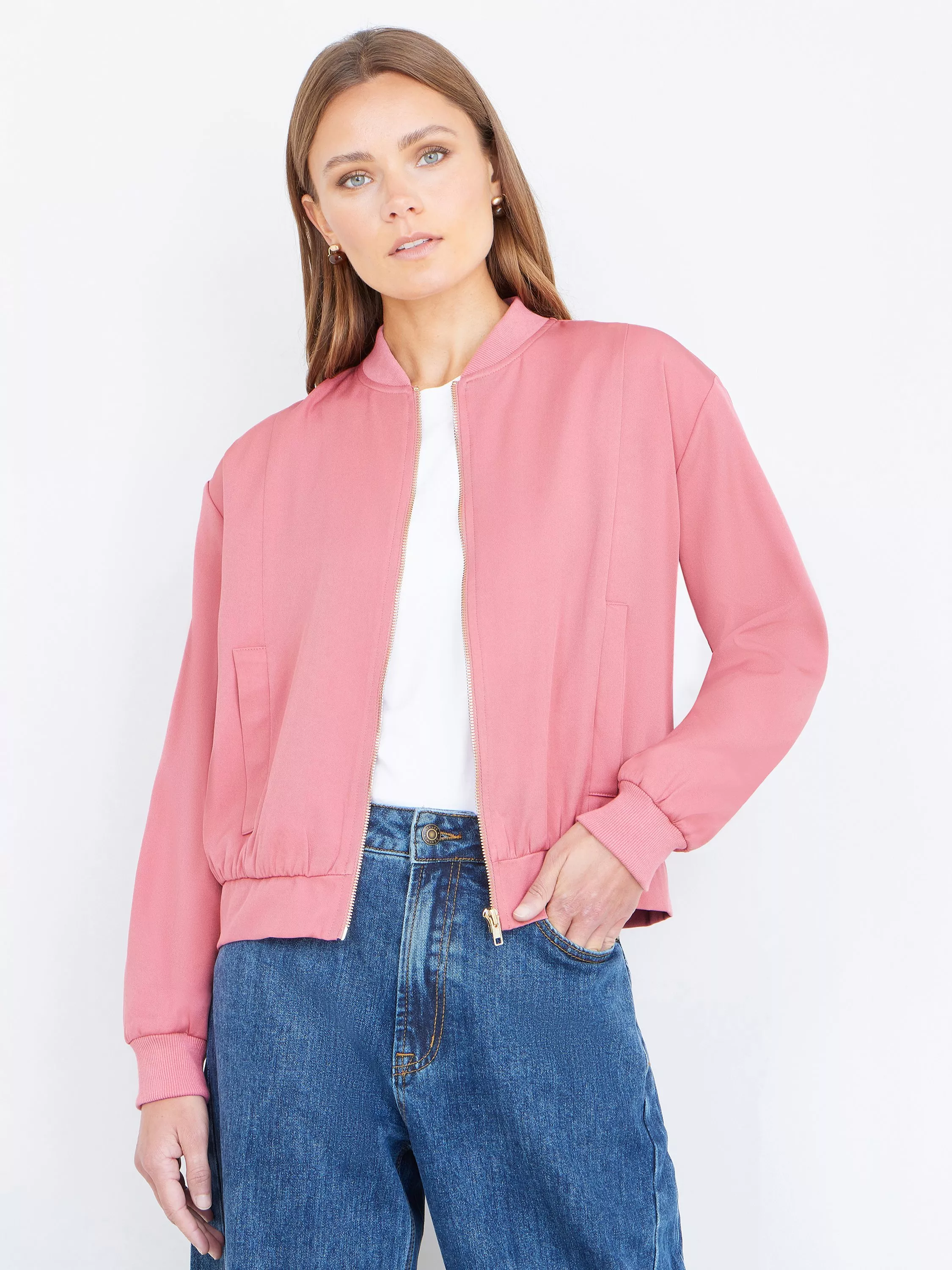In the classic varsity silhouette we know and love, this bomber jacket from Yumi sits at the hip for versatile coverage.
