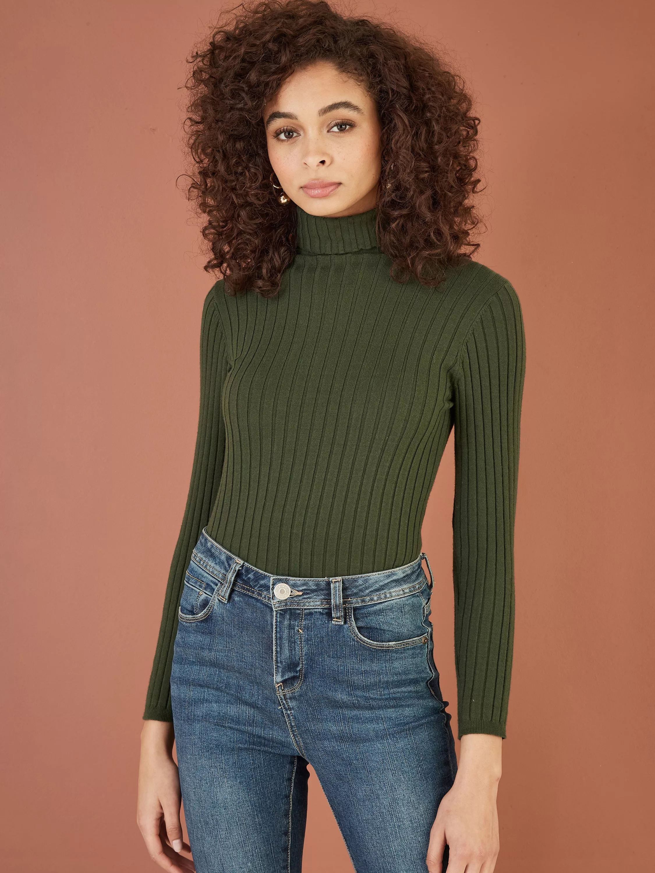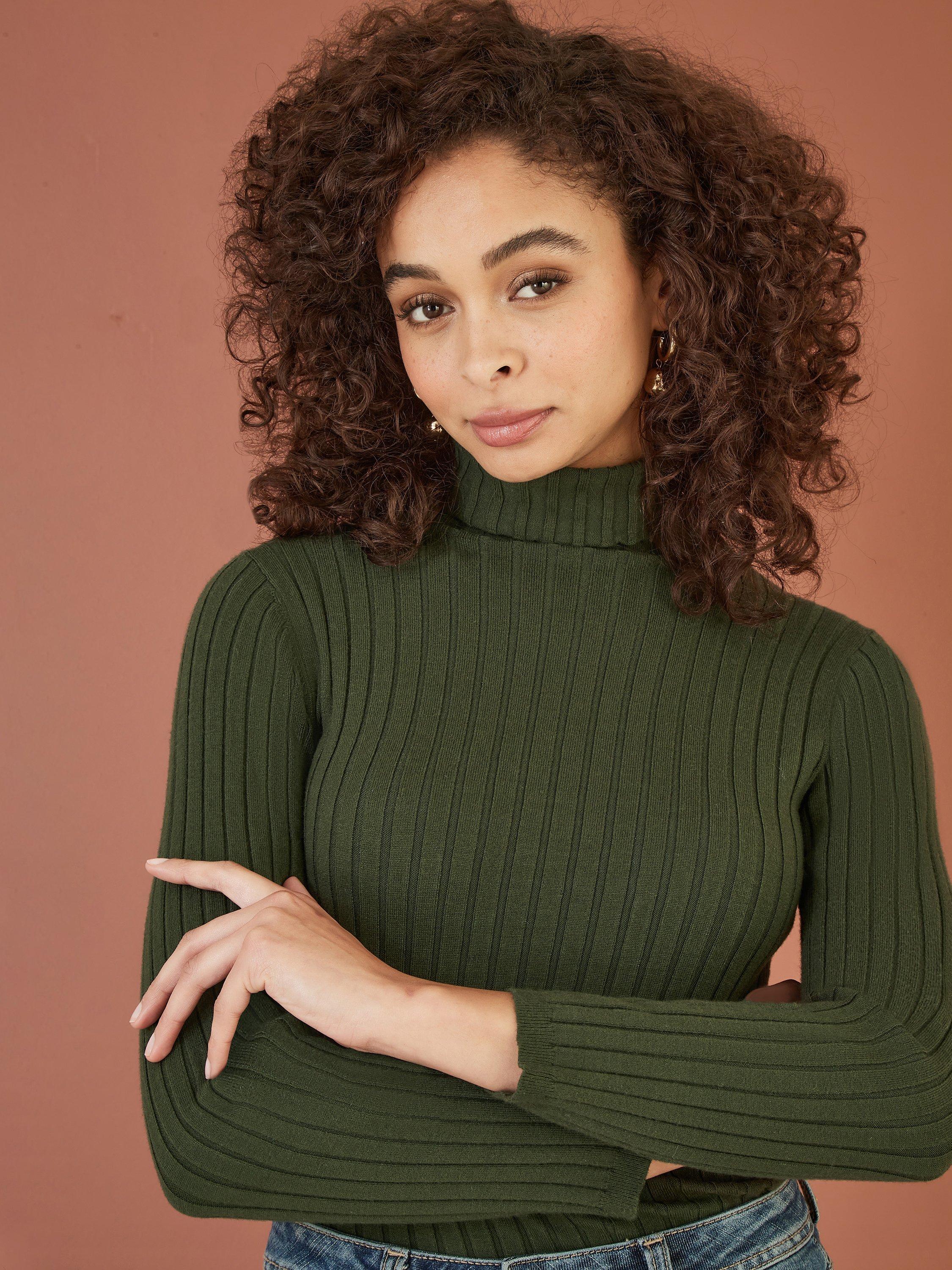 Keep it classy in this staple wardrobe essential for the Autumn season. The fitted ribbed knit is perfect for pairing with wide-leg trousers or jeans for a comfy look that is smart and on-trend. Featuring a gorgeous roll neckline that will keep you warm as the weather cools. This supersoft knit really is a classic that you will be able to style over and over again.