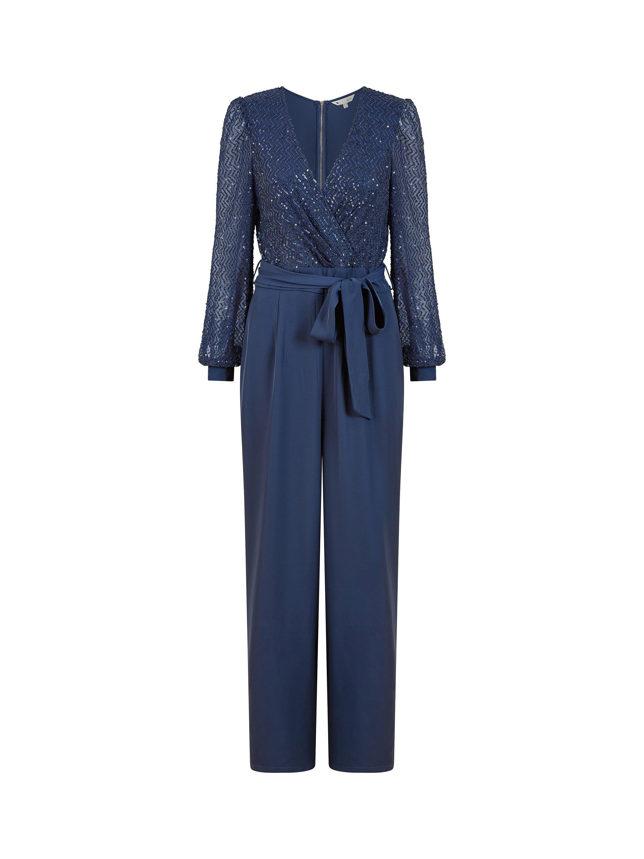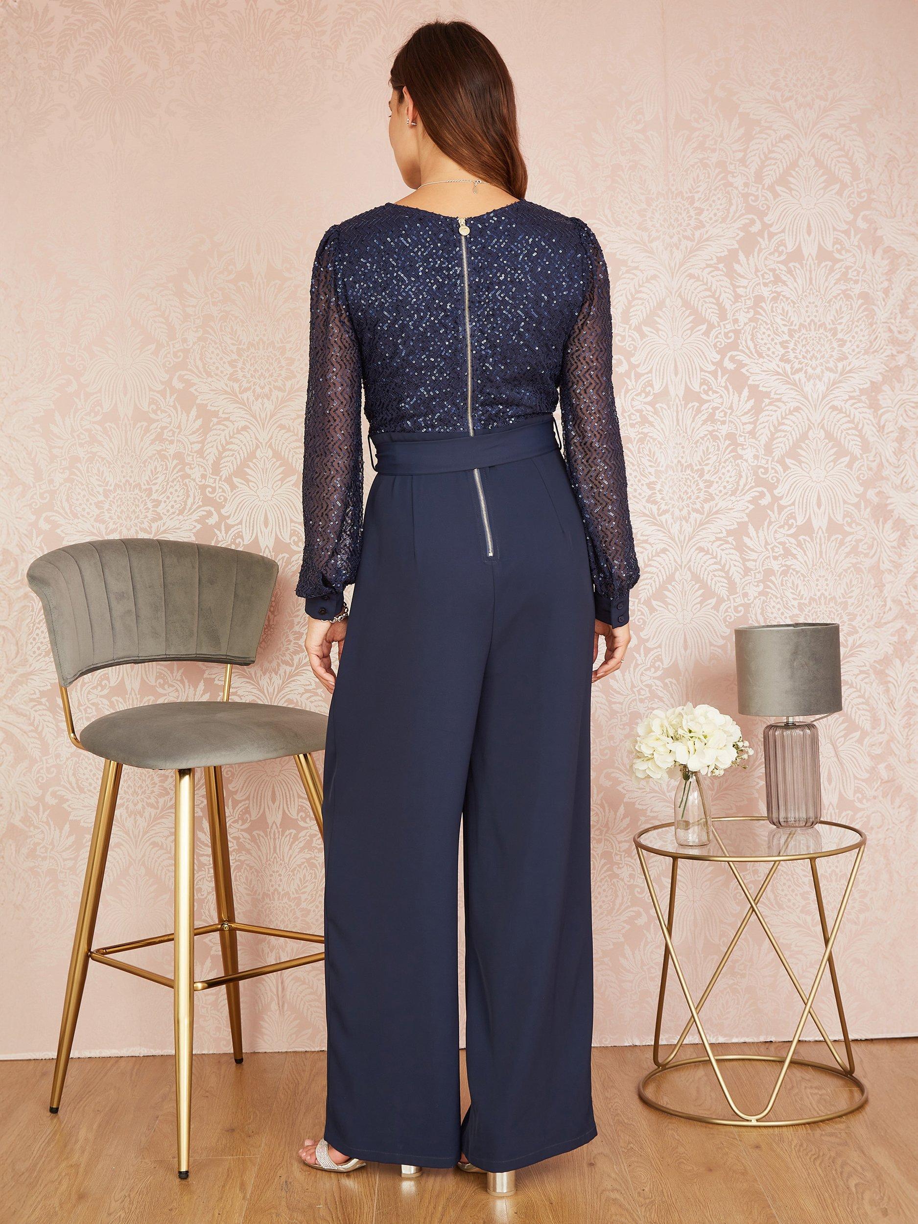 This is the new wave of sophisticated sequins for evening wear this party season. This long sleeve jumpsuit from Yumi will have you feeling like a million dollars from the moment you slip it on. With a wrap V neckline, tie waist and sequin embellished bodice, the tailored trouser is uber flattering. Overall we know this is the perfect way to stand out at your Christmas party, style with simple accessories and ooze elegance.