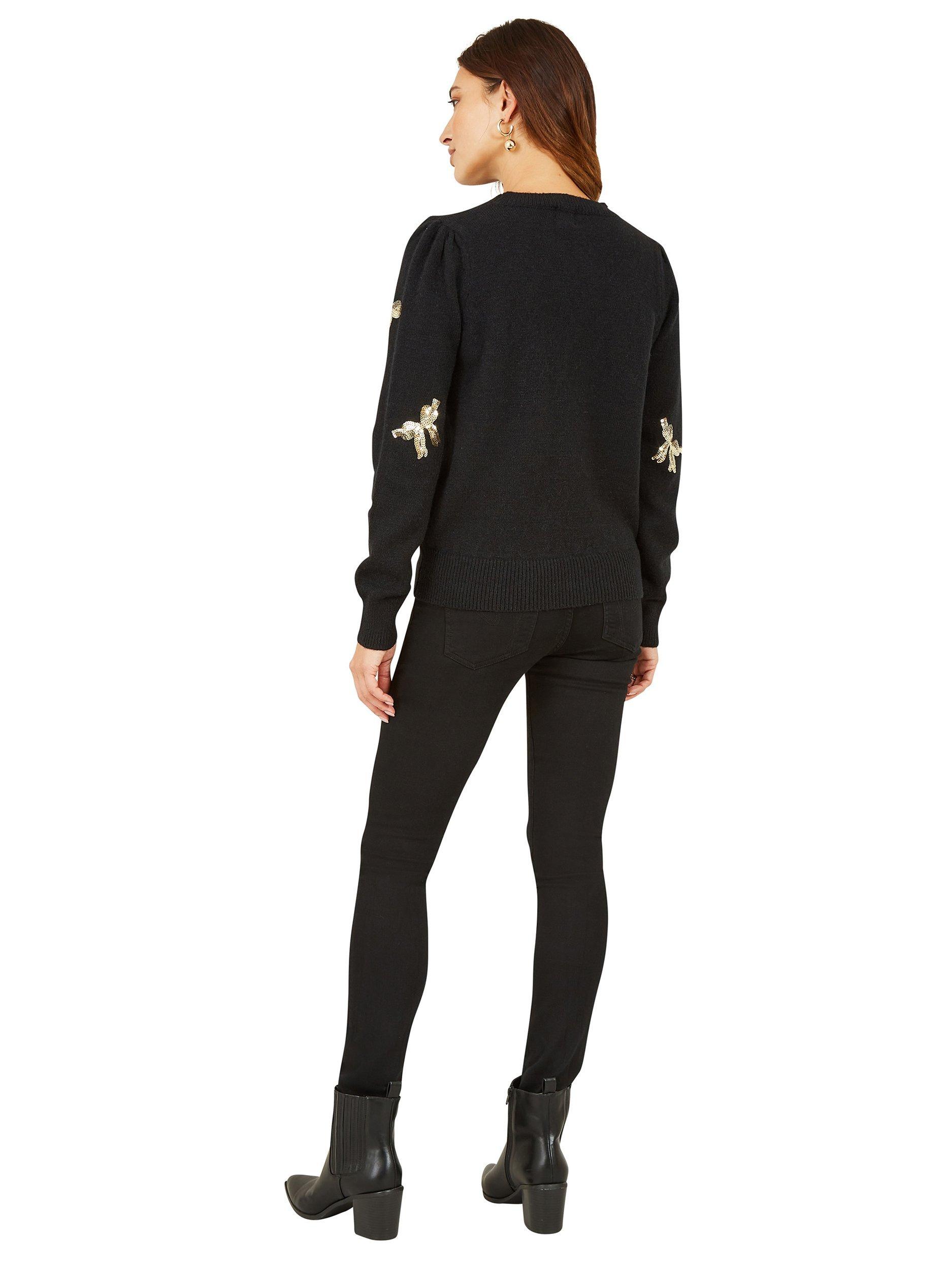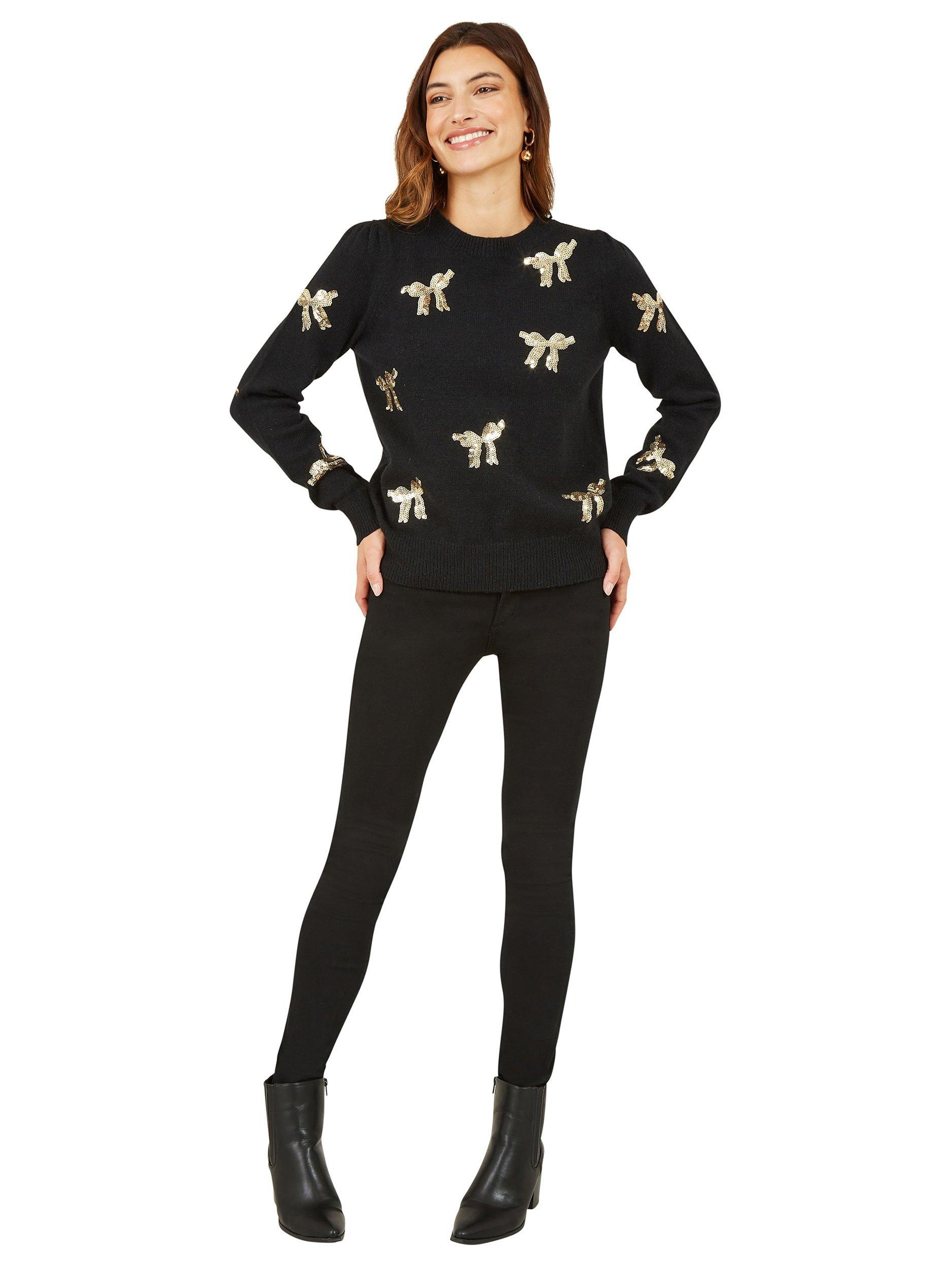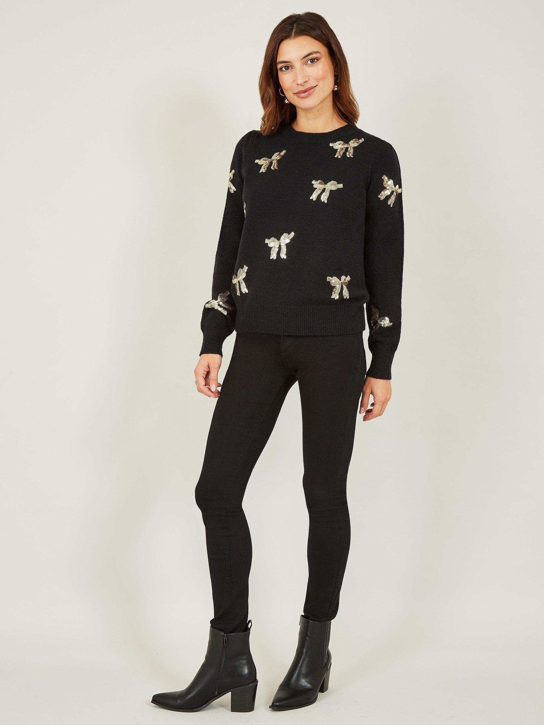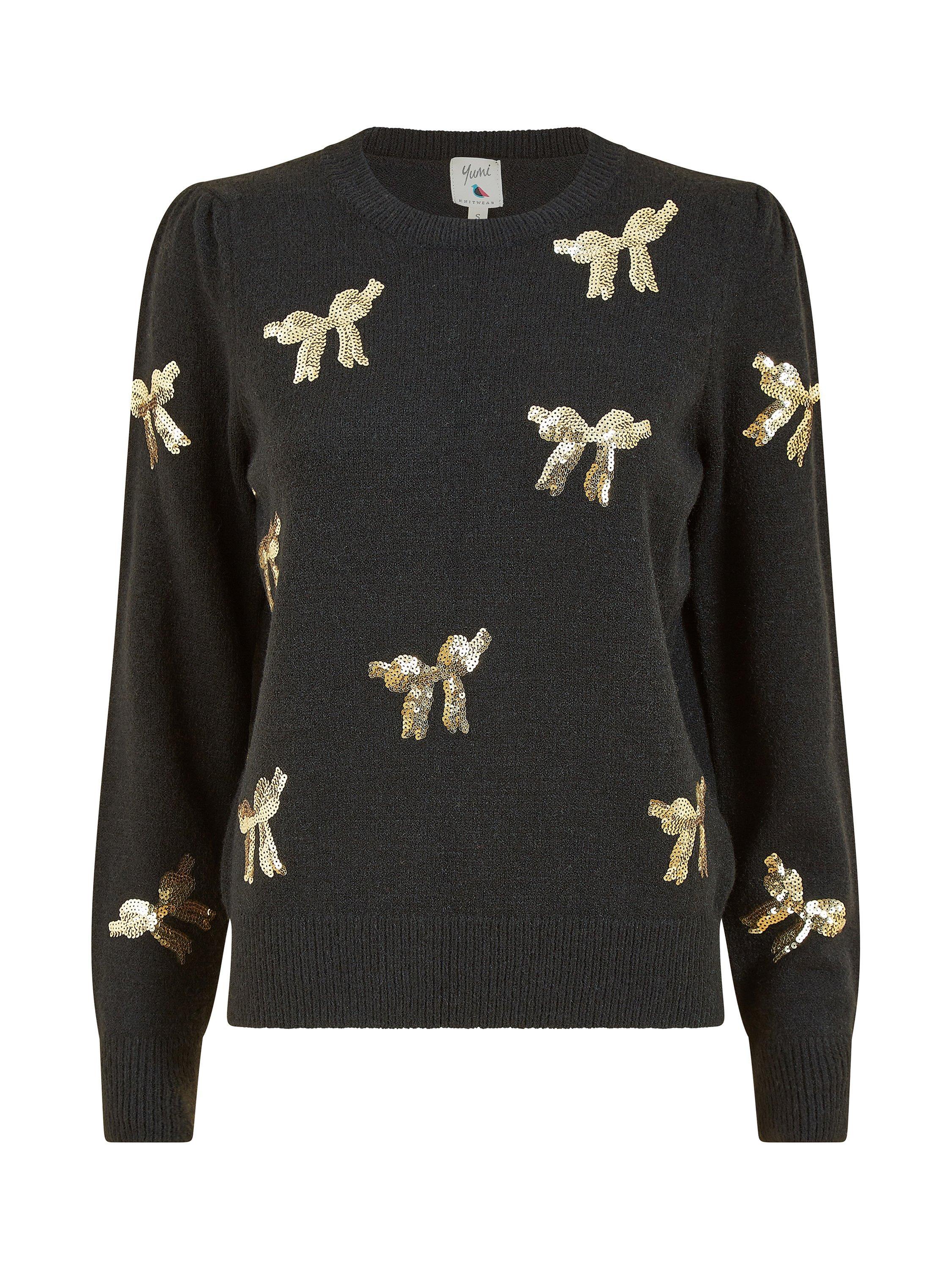 Bring some sparkle into this season with this stunning, festive yet subtle Yumi Sequin All Over Applique Bow Knitted Jumper. In soft knit with all over applique bows, this piece is perfect for layering. Step out in style - just add a leather jacket.