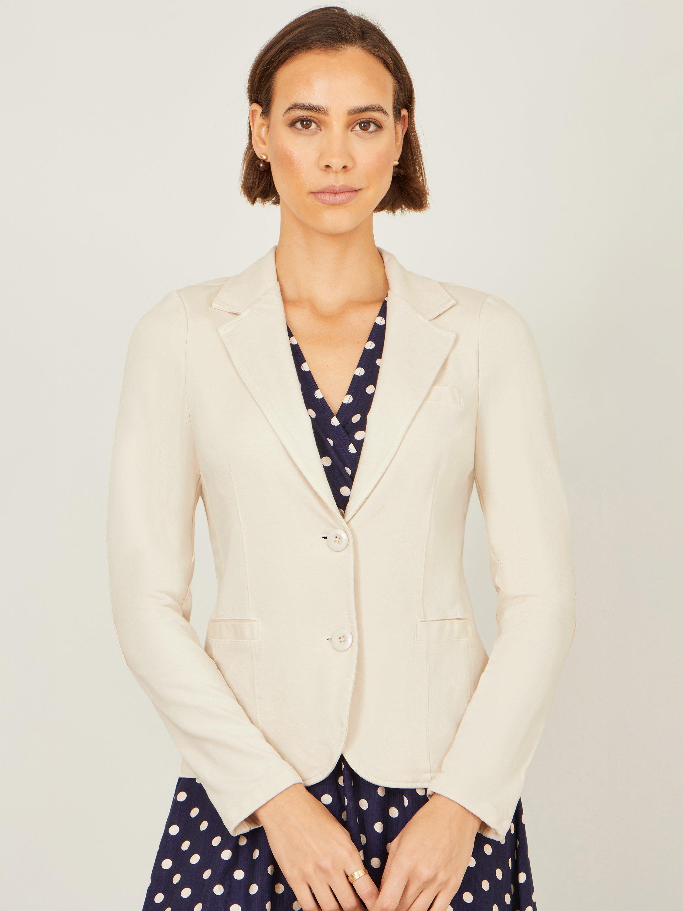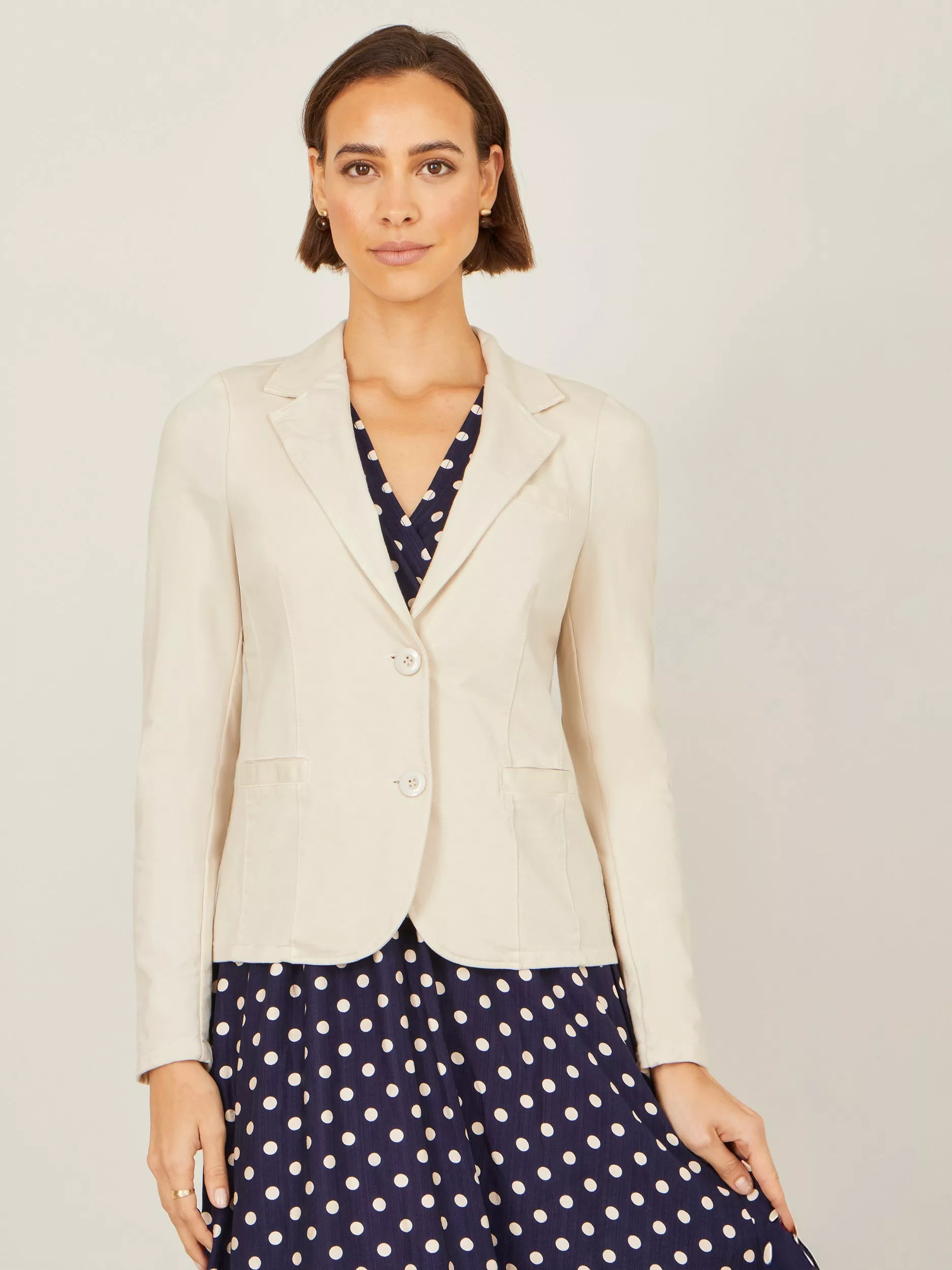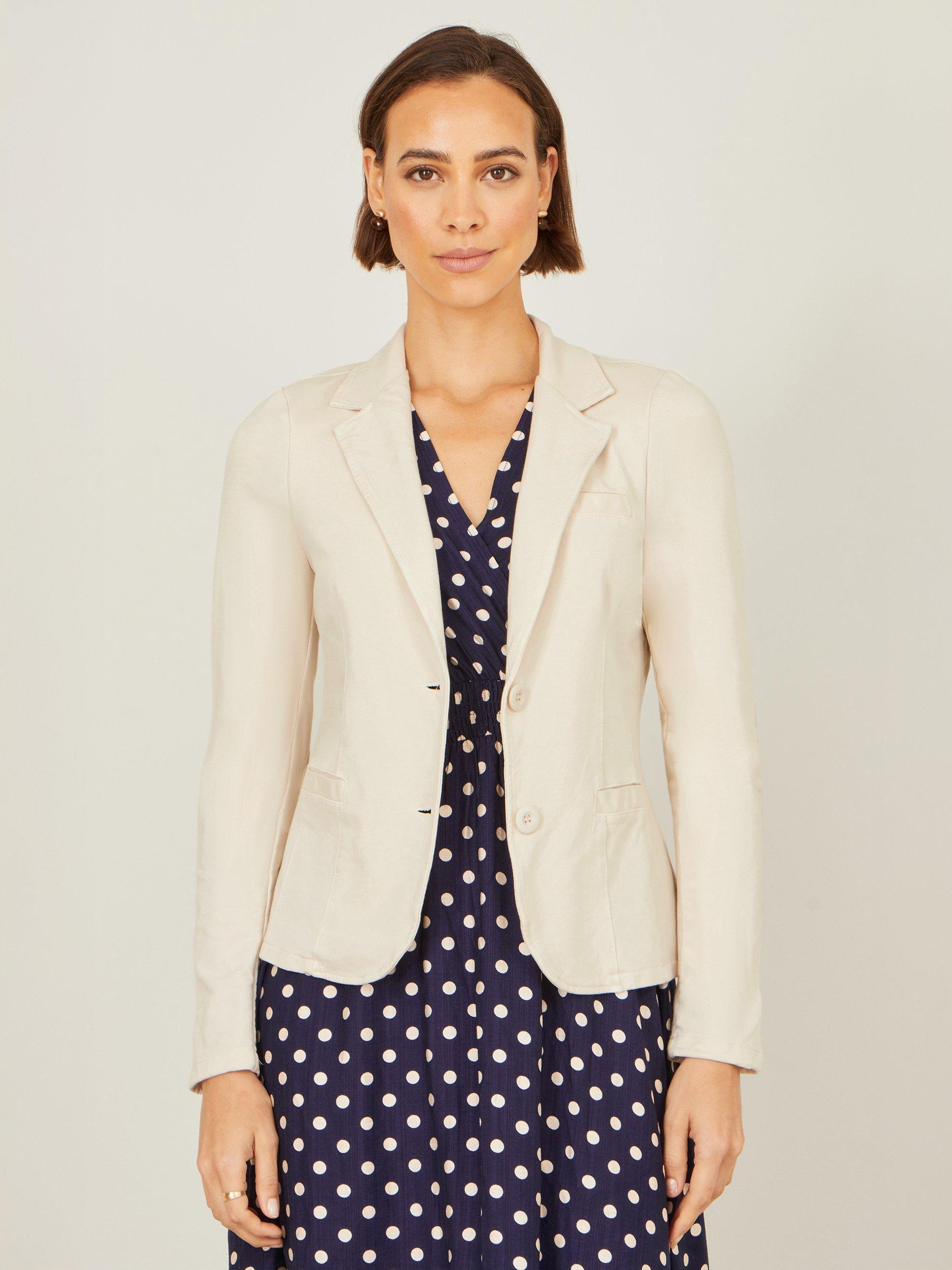 This blazer brings an easy-going touch of polish to any outfit. The classic notched lapels and simple buttons give it just the right amount of structure. The fit is relaxed, yet tailored and professional without feeling stuffy, making it the perfect “throw it on and go” layer. Whether you’re topping off a playful polka-dot dress or dressing up your favourite jeans, this blazer adds a fresh, effortlessly chic vibe that feels stylish in any setting.