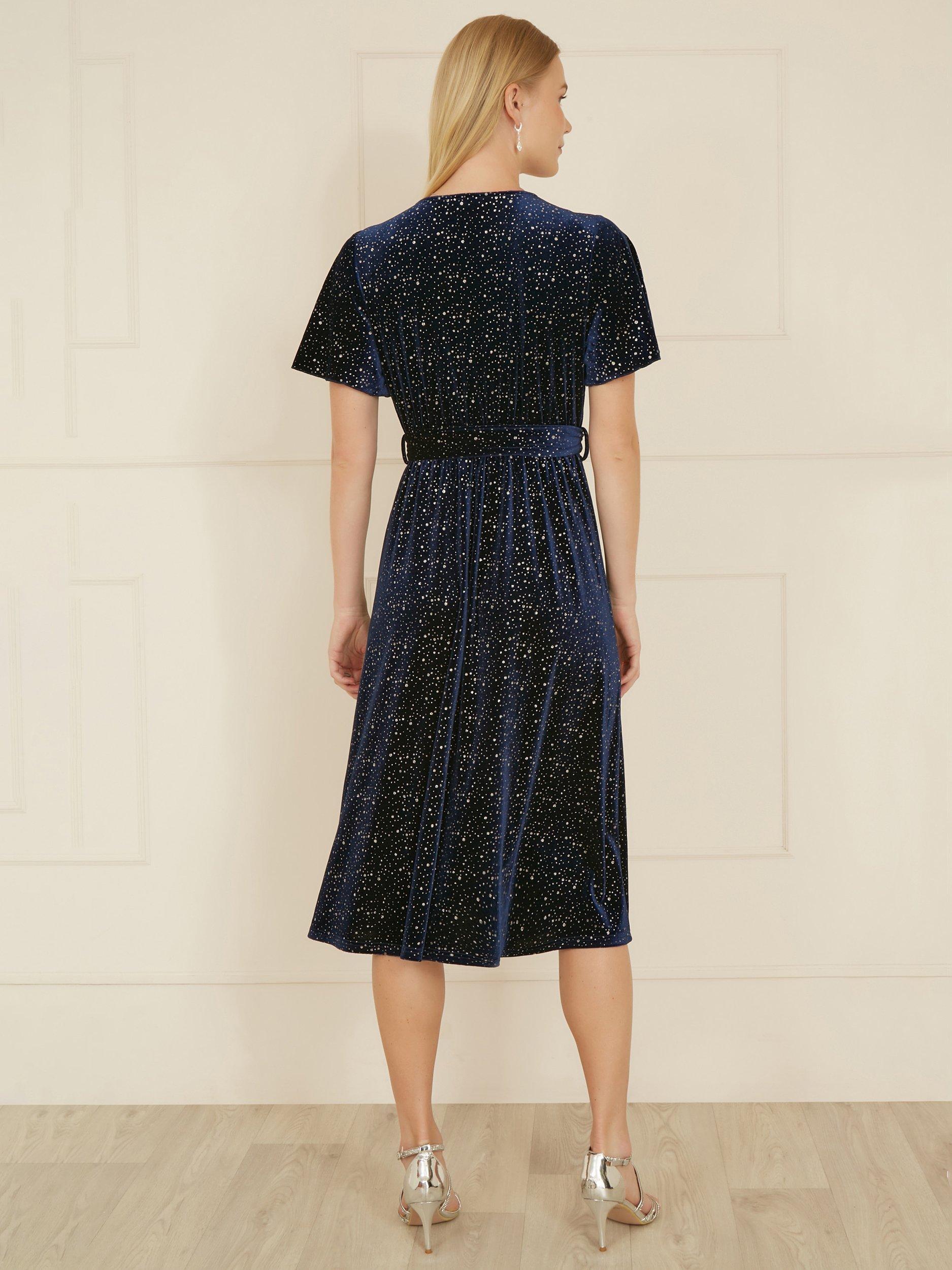 YumiSparkle Velvet Wrap Dress, Navy