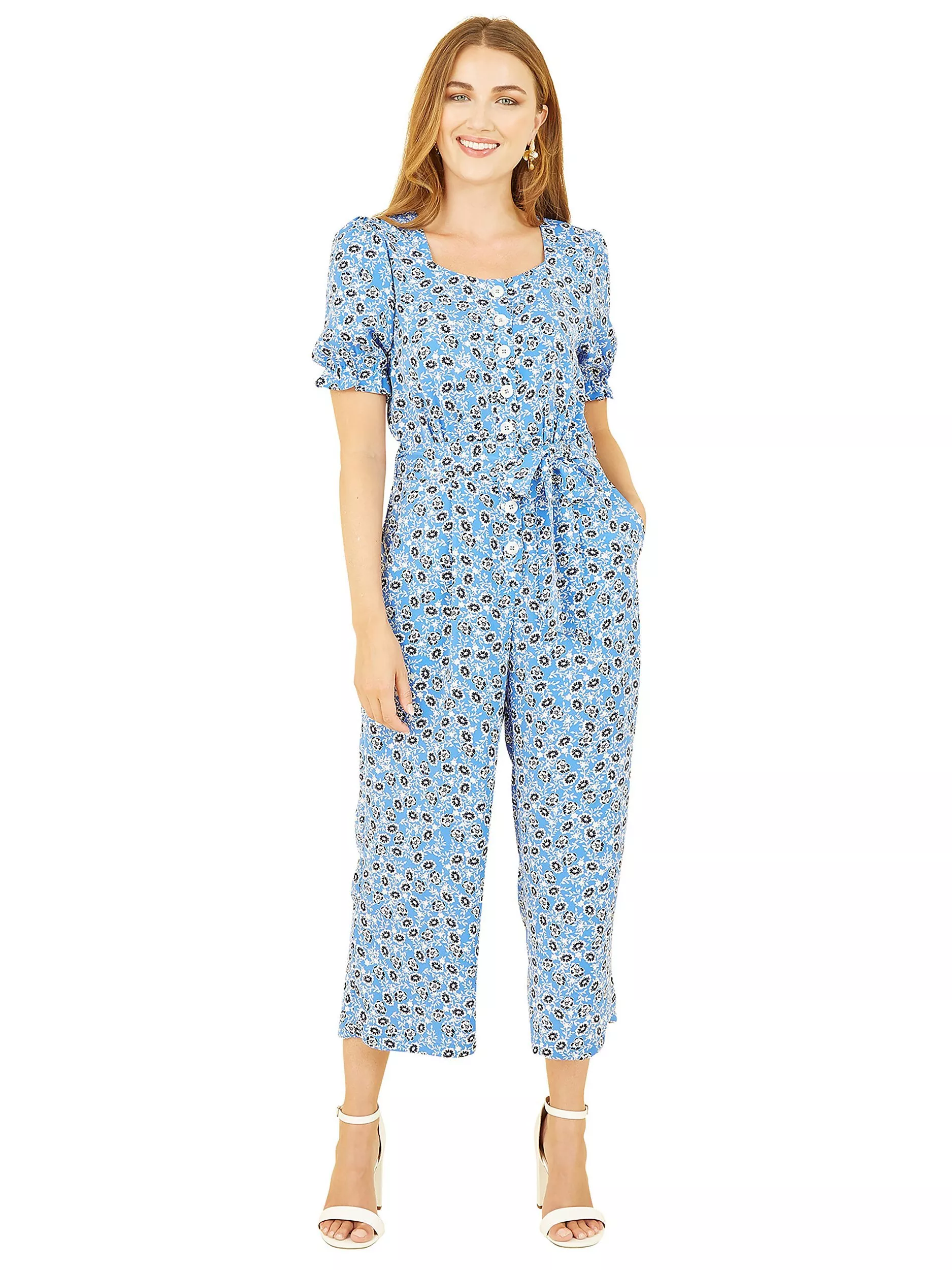 As pretty as a spring meadow, this jumpsuit from Yumi is perfect for long days in the sunshine. With puff sleeves, a tie waist and button up front it is perfect paired with trainers for holidays and summertime invites. Finished off with the best feature - Pockets!