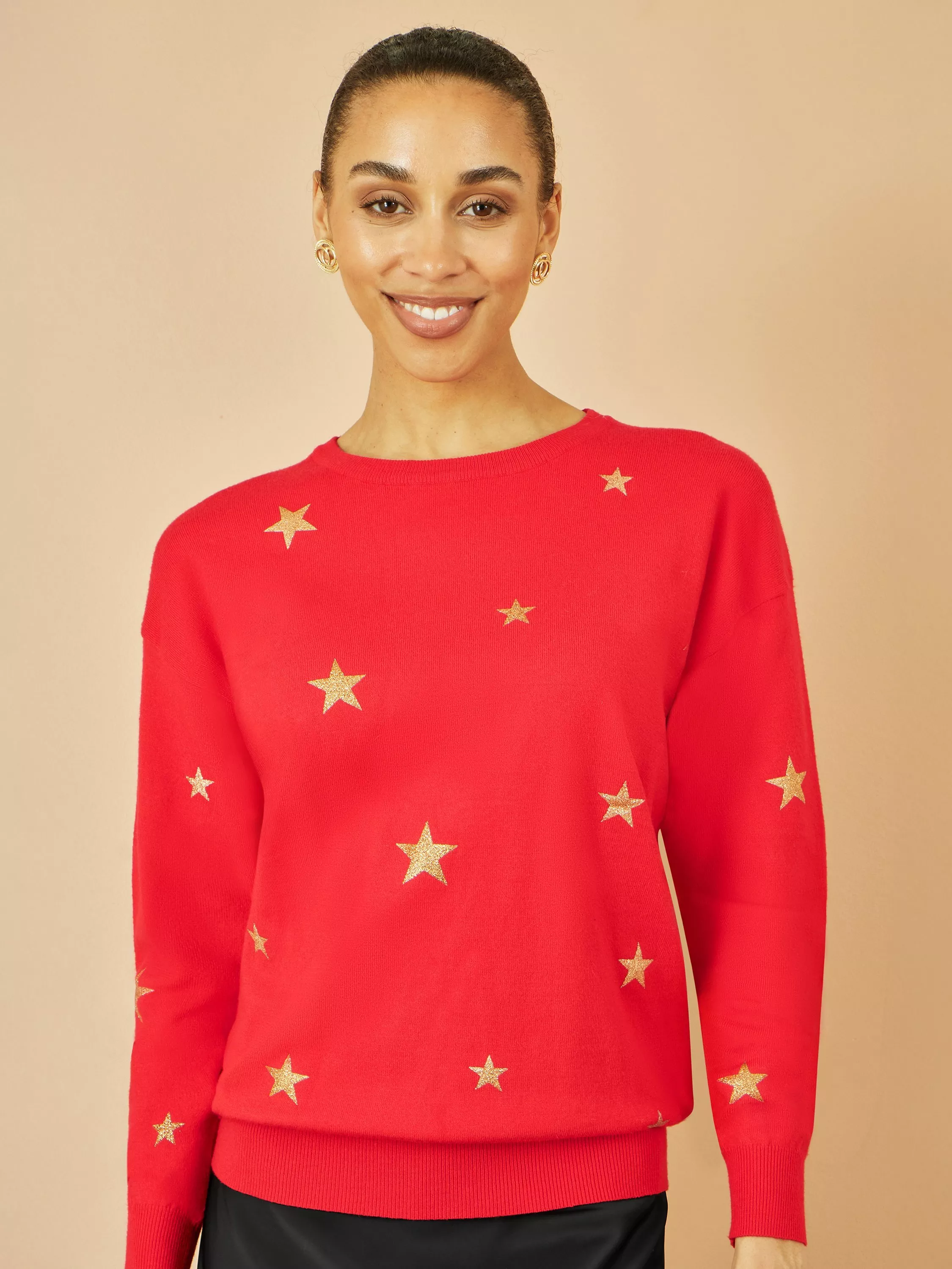 The super cute star print jumper with gold foil detail is perfect for the seasons changing. Made from a lovely soft fine knit, with round collar. Style with your jeans for an off duty look at the weekend.