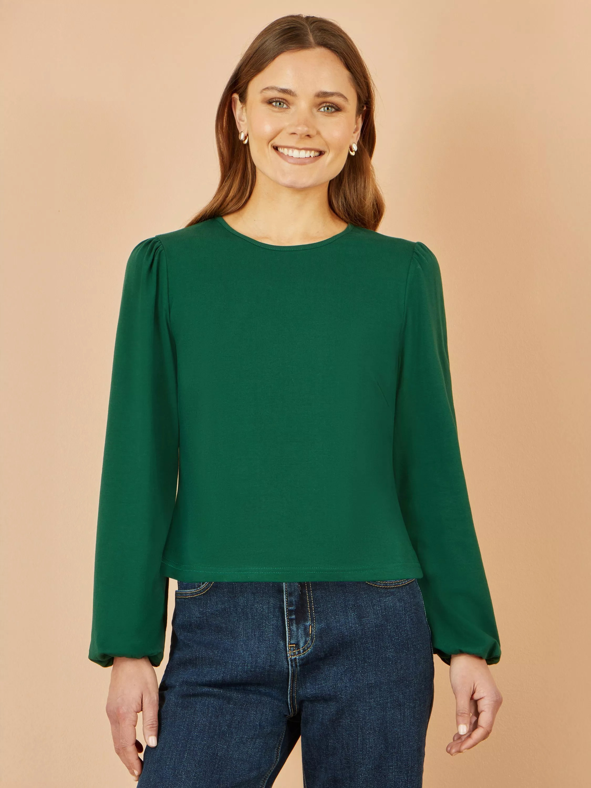 Feel ready for anything in this cotton top from Yumi. The easy round neck and long sleeves keep you comfortable, while the simple style makes it perfect for busy days or smart-casual meetings.