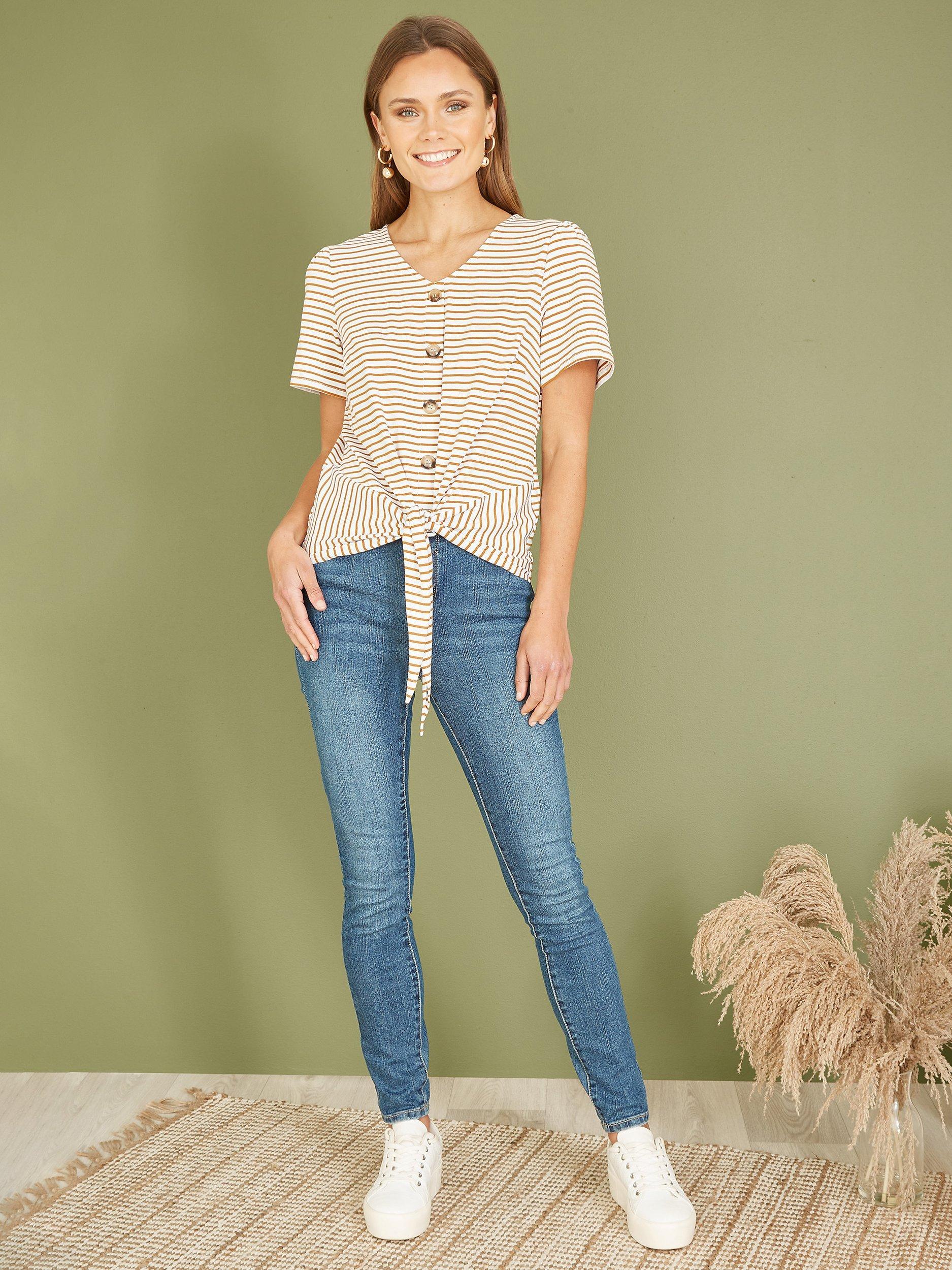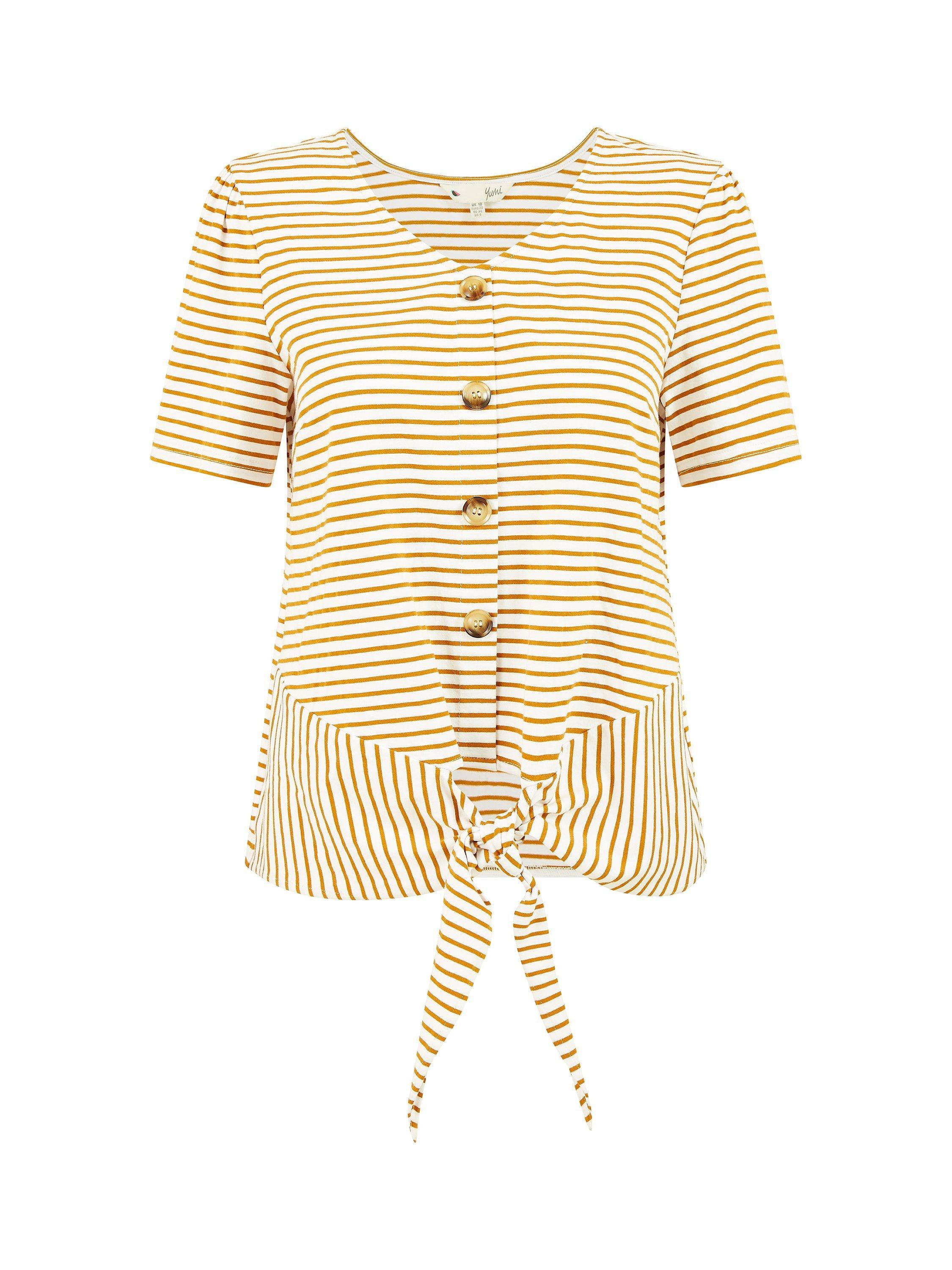 The foundation to all your looks, this tie hem t-shirt from Yumi is a wardrobe classic with neat striping.