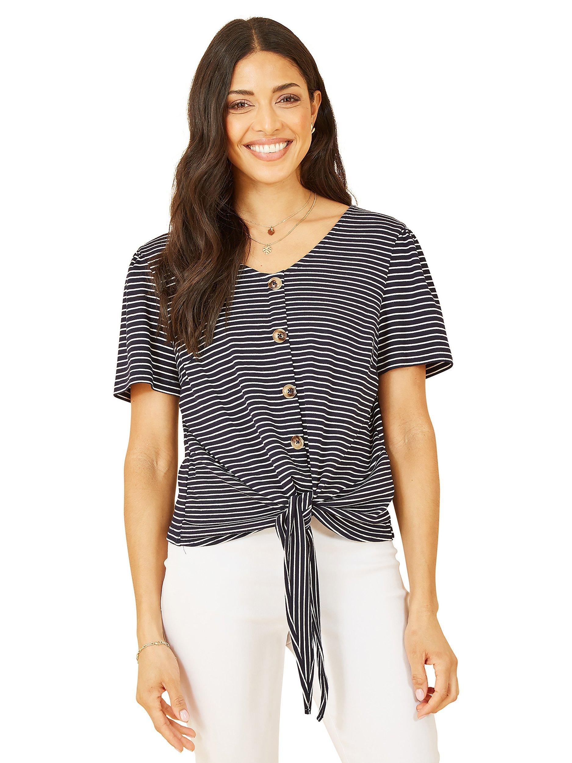 An all-year essential, this jersey top by Yumi flatters the figure with its striped pattern.