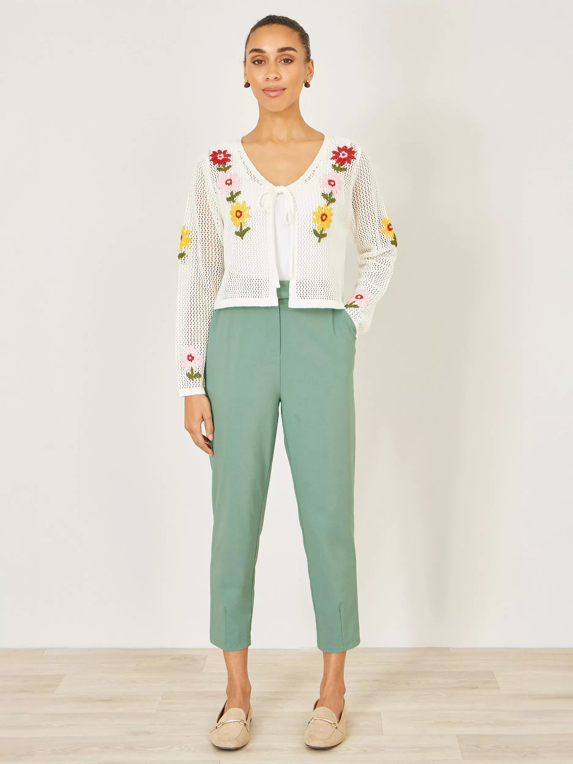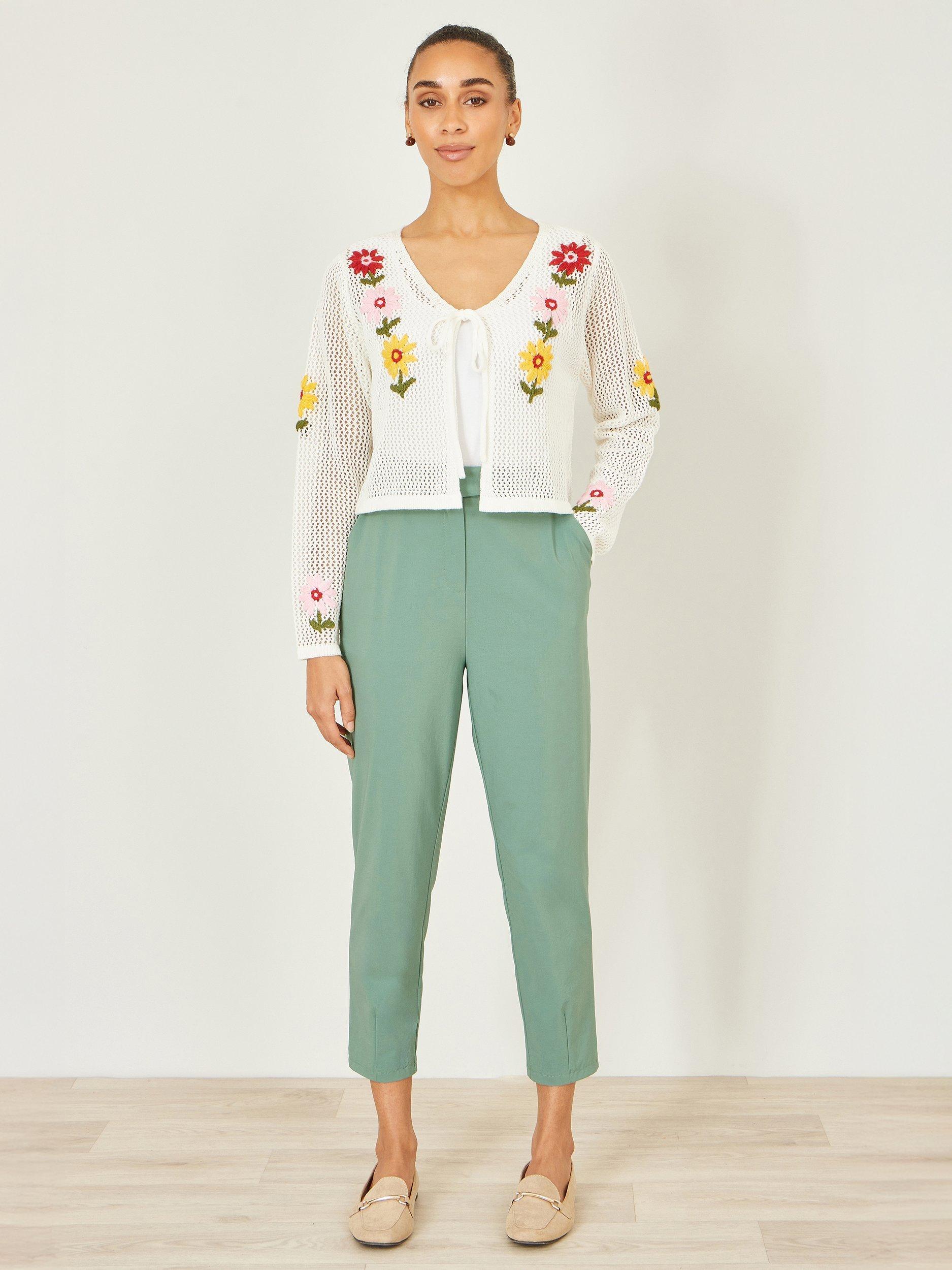 Wear for everyday and get that holiday feeling in these capri pants from Yumi. In a cropped length, and crafted with stretch for ultimate comfort and style. The tie belt at the waist gives these everyday essentials a chic twist.