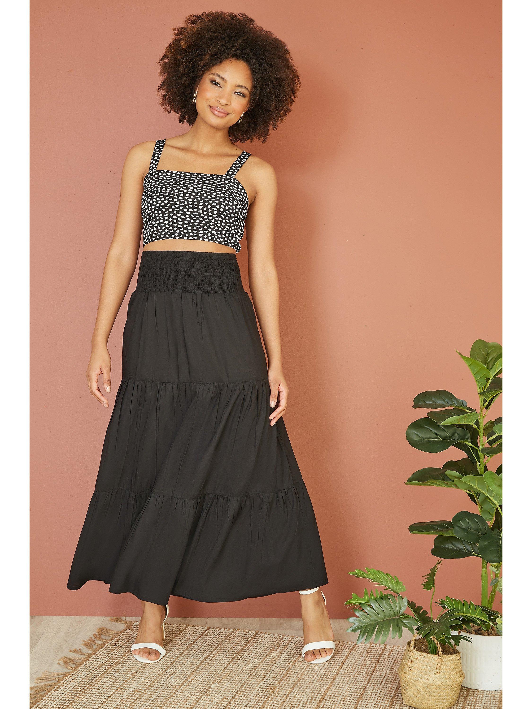 Tiered for a dramatic touch, this midi skirt from Yumi redefines your collection with the minimum of fuss.