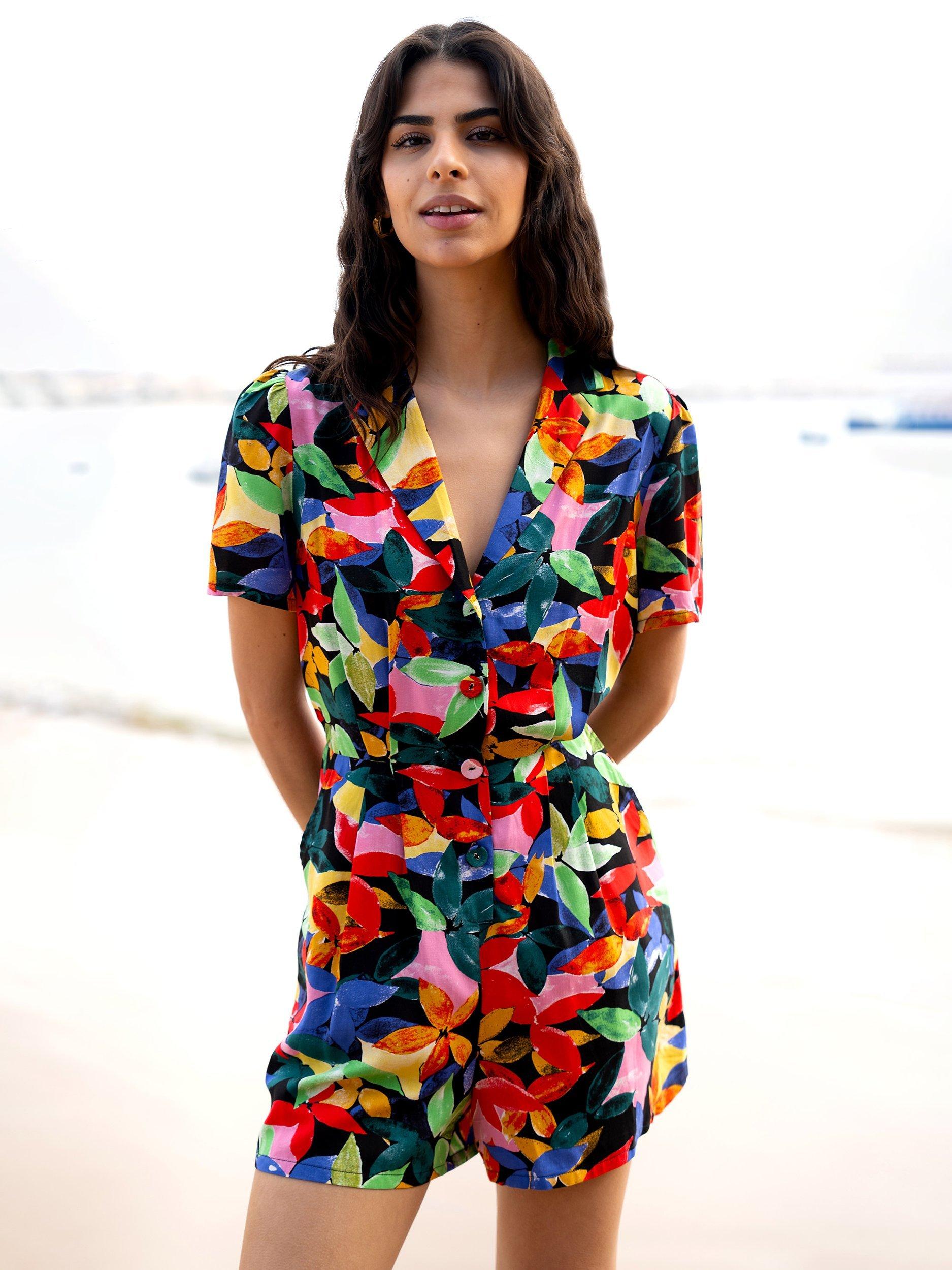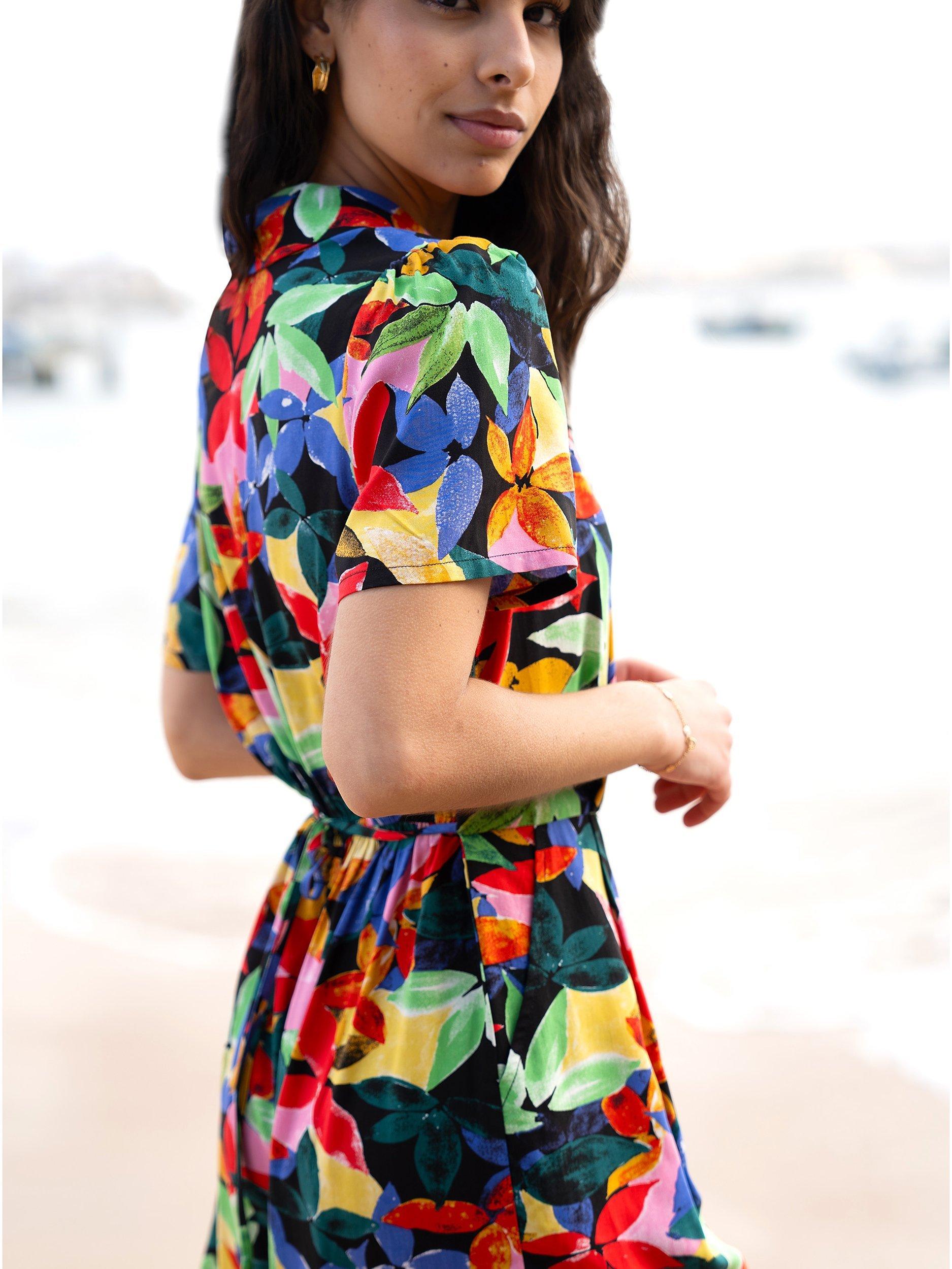 Showcasing a nature filled print, this piece is sure to be something you will wear again and again.
