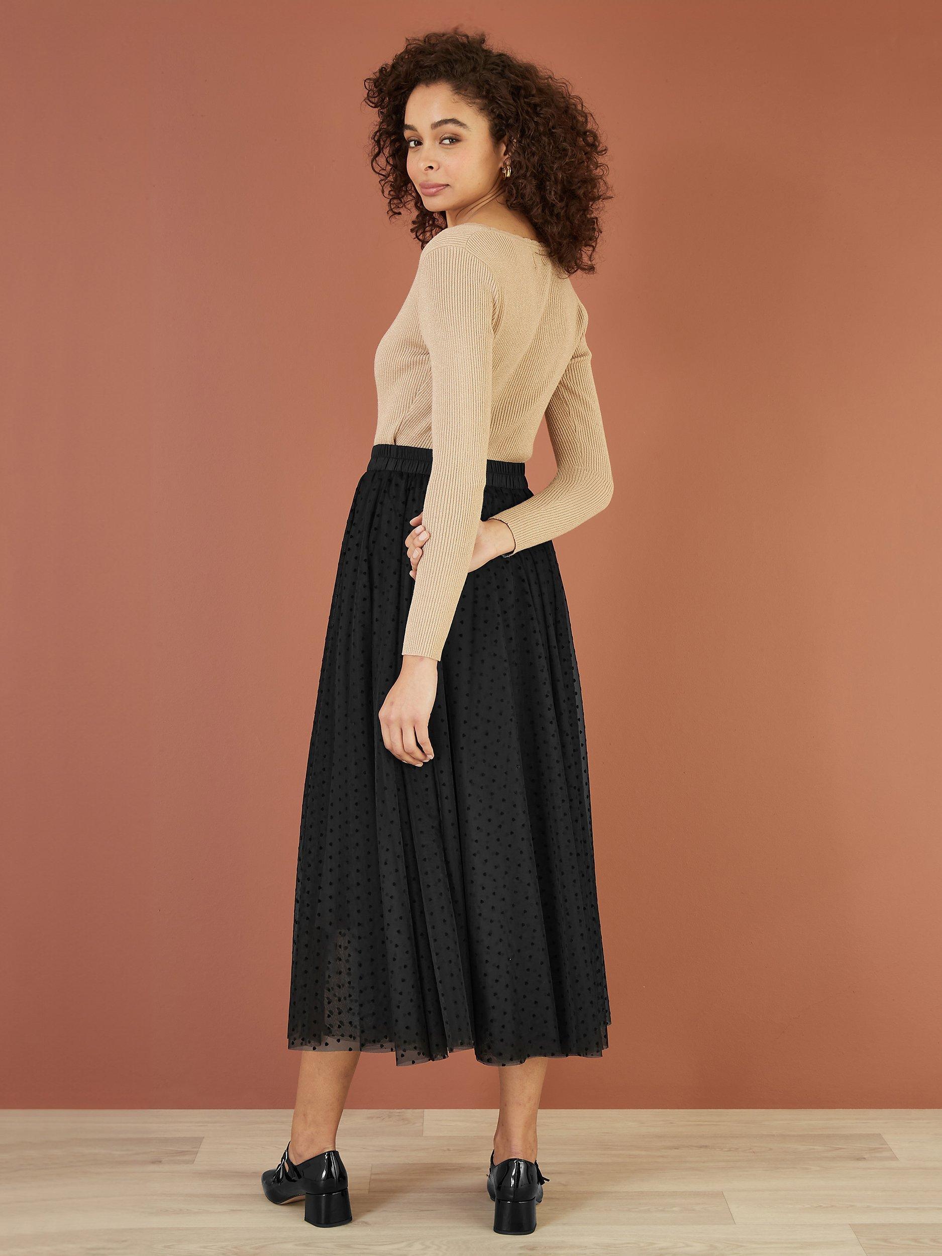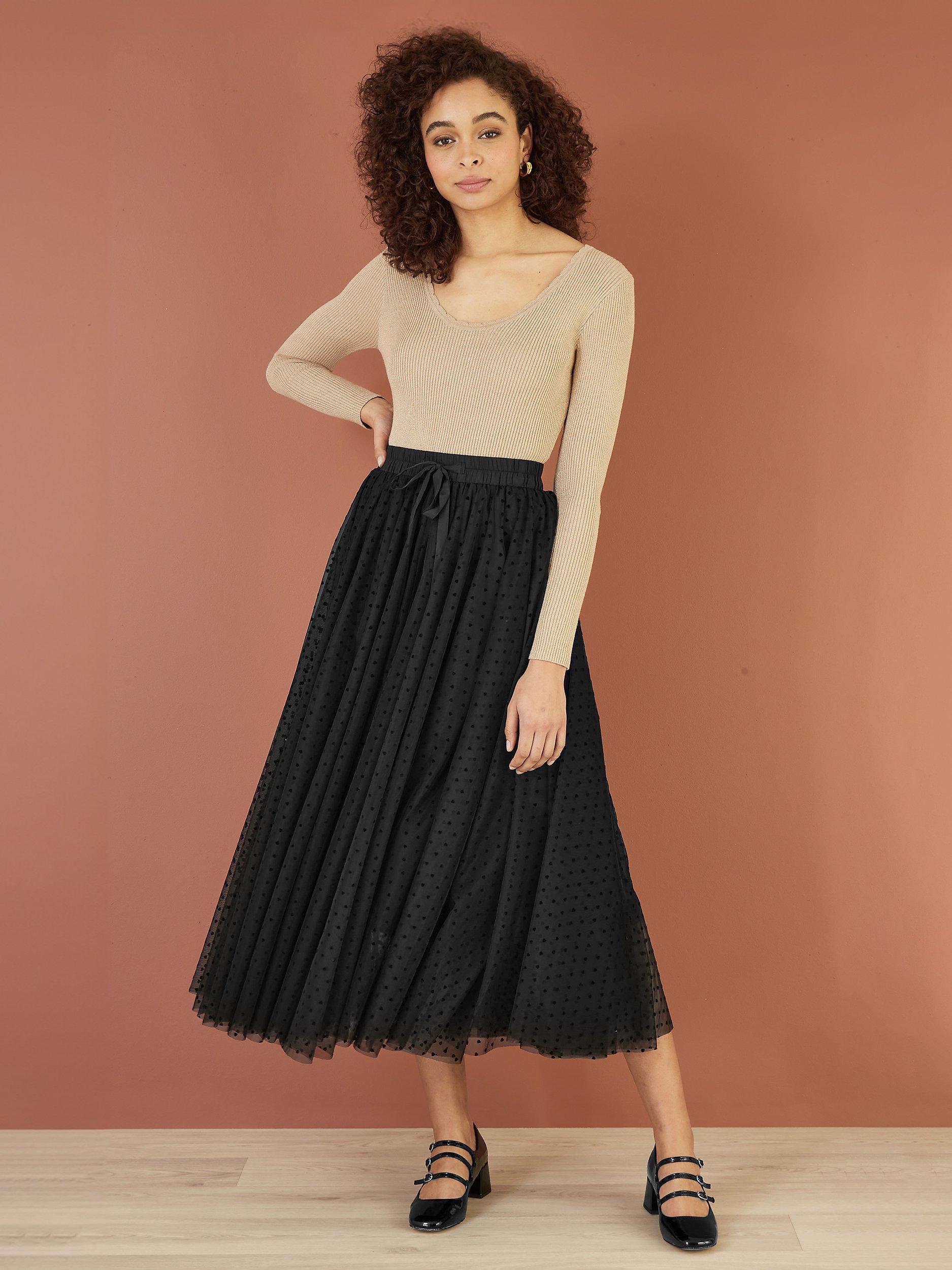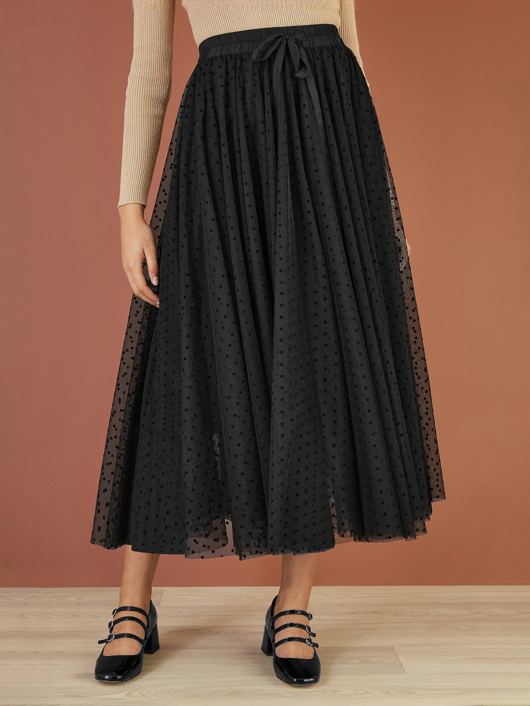 If elevated romantic style is your vibe for the new season - this is the perfect style for your wardrobe. This midi-length skirt boasts a flirty and mega-feminine feel, made from luxurious tulle with a cute heart print. Style with a long-sleeved roll neck for the ultimate elegant look. We love this style for autumn weddings and special occasions.