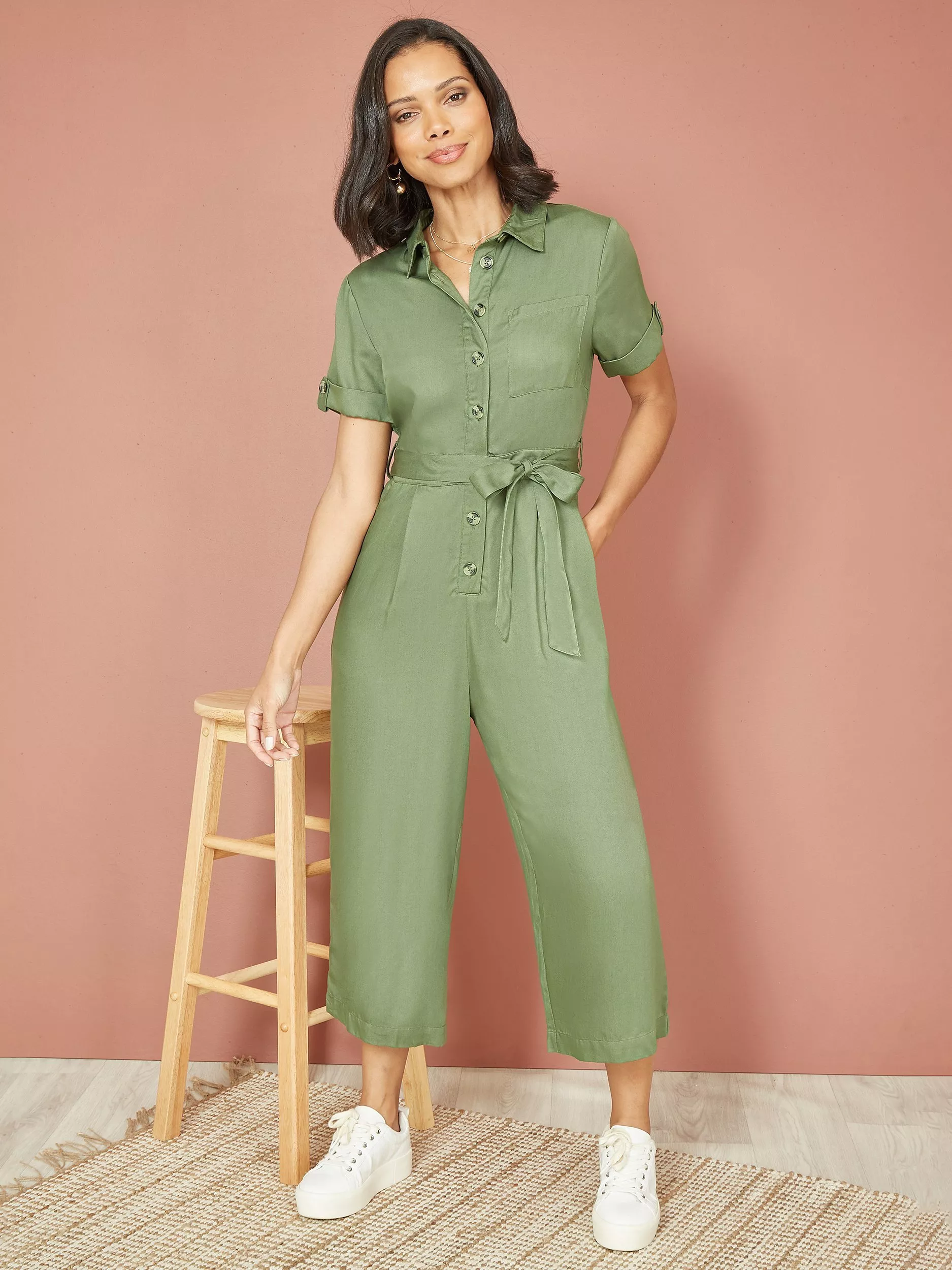 We love a versatile everyday jumpsuit and this one ticks all the boxes, made from lightweight viscose twill fabric for a practical and stylish fit. Design features include, button down fastening, wide leg cropped length, and pockets. Style with trainers or sandals for a relaxed look.