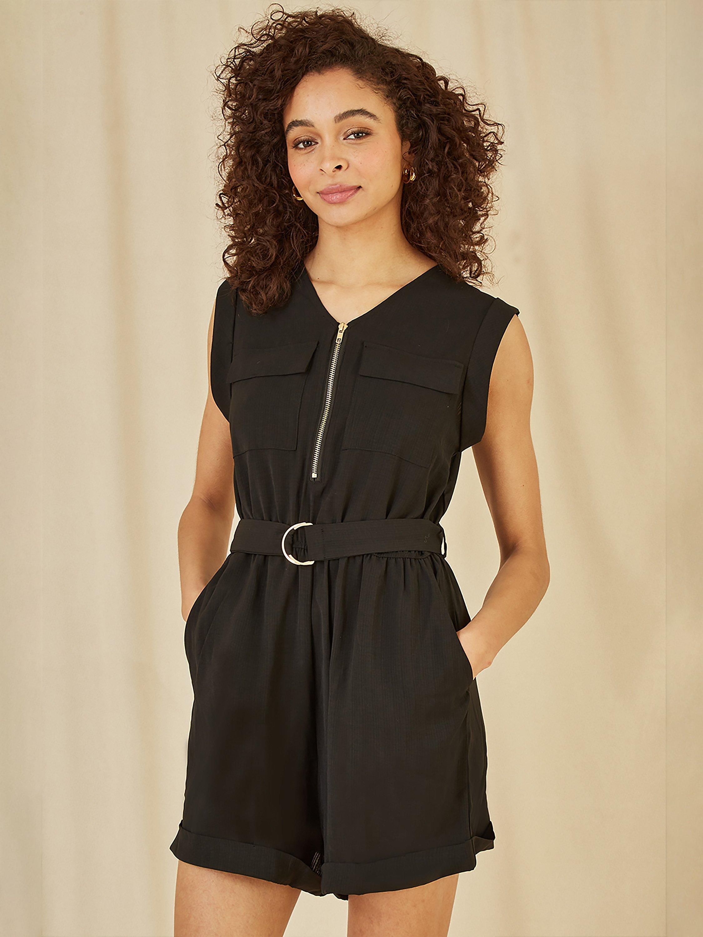 Framed with a flattering v-neck, this sleeveless jumpsuit by Yumi has a loose-flowing shape and is whipped up from a lightweight fabric that's built to last.