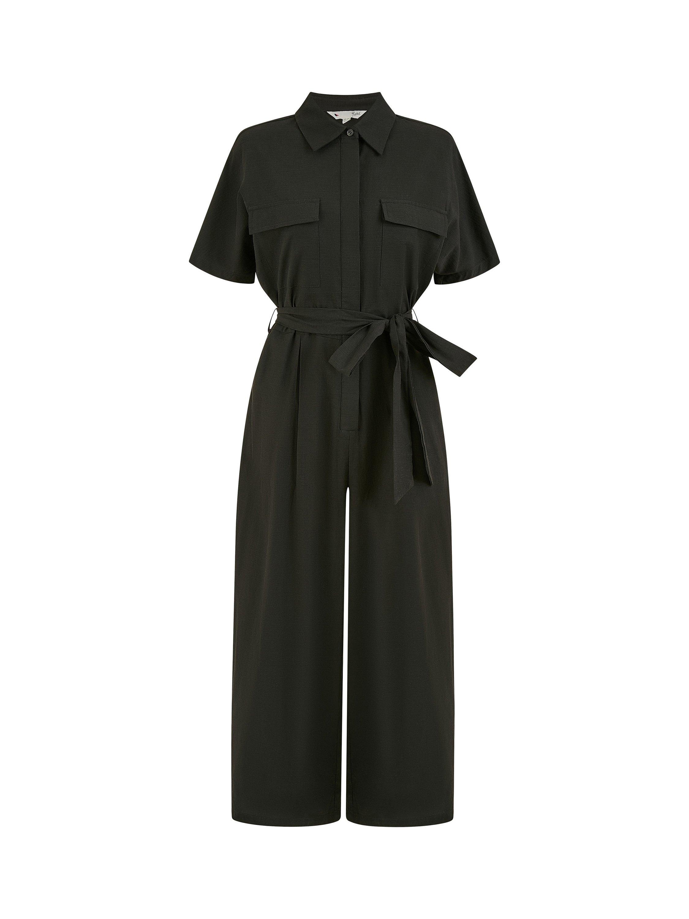 This practically perfect fit from Yumi will have you sorted for any situation. Work or weekend, this utility-style jumpsuit has a lot going for it. A sleek yet relaxed design, with a tie at the waist, tailored sleeves, button-down fastening and pockets on the front. Wear with trainers for a cool fit.