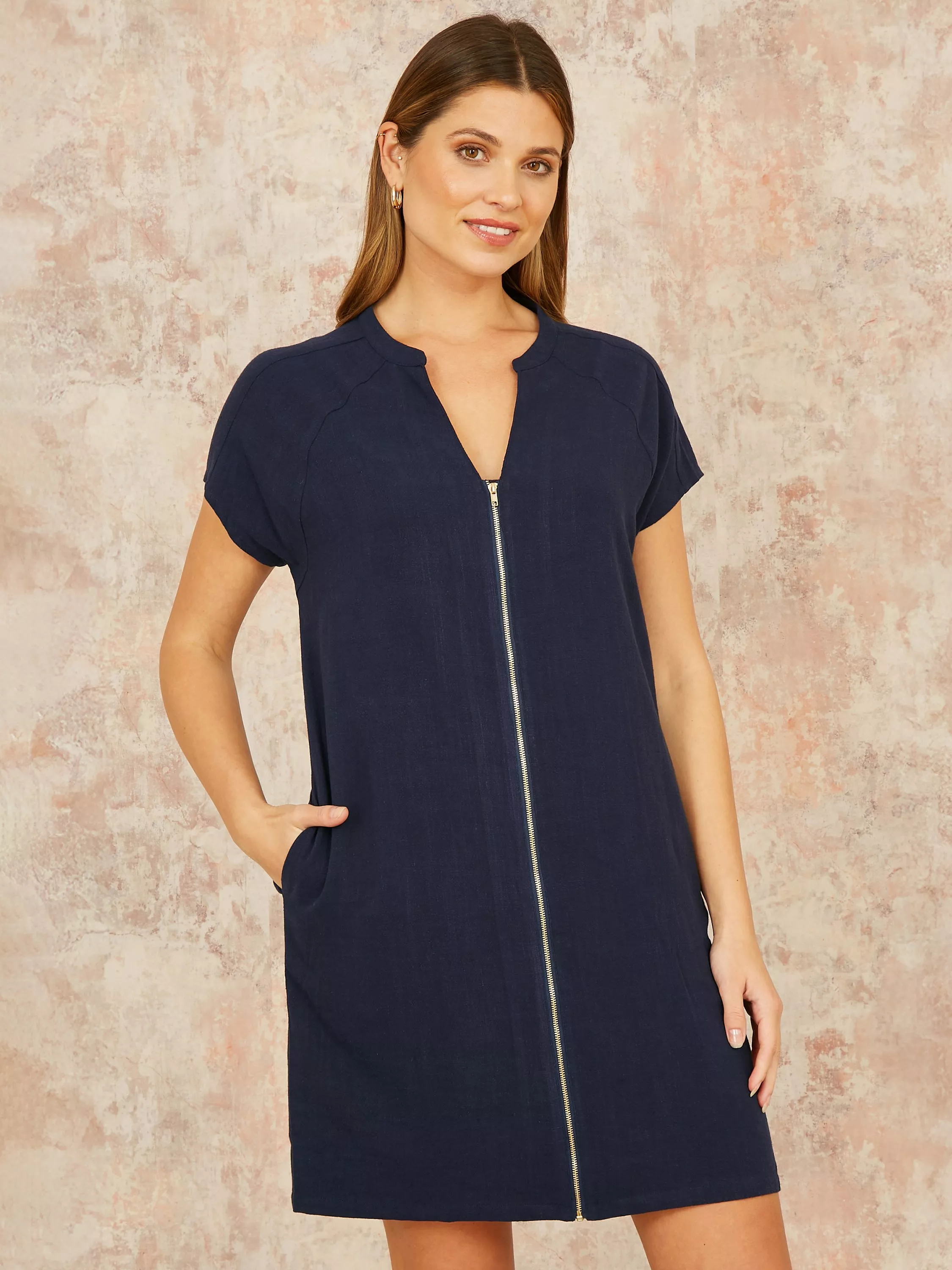 In a breathable viscose fabric that in a super easy and versatile tunic shape, this dress is perfect for the new season - Great for holidays or casual dressing. The pockets and front zipper add cute style details. We love this paired with trainers and a denim jacket for the spring.