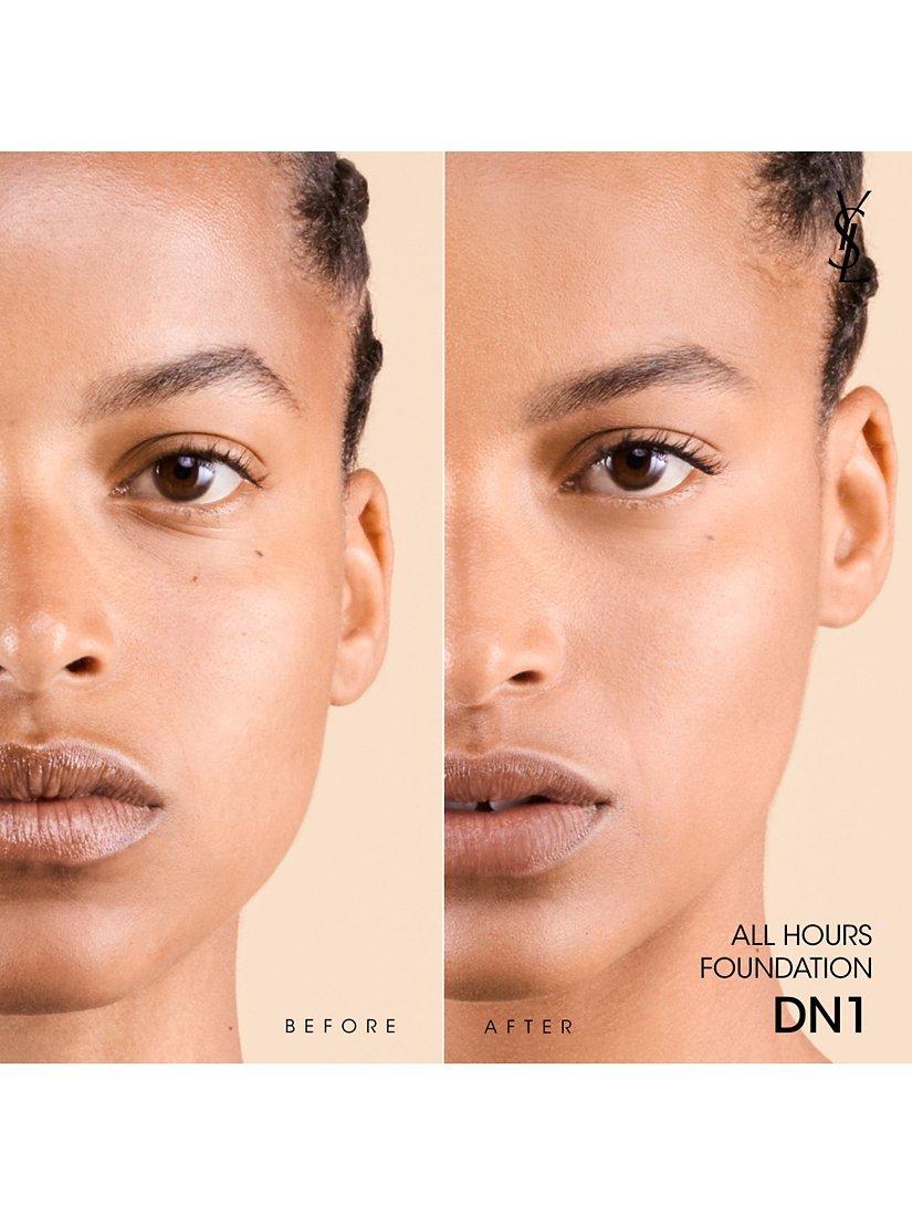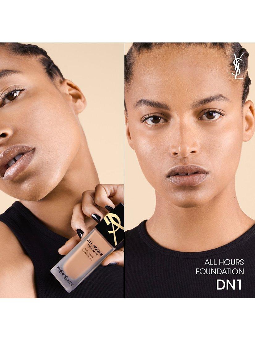New and Improved YSL Beauty All Hours Foundation, the complexion that you can rely on all day. Now with an upgraded, breathable formula that provides up to 24H full coverage and a weightless light as air feel, as if your skin was bare.