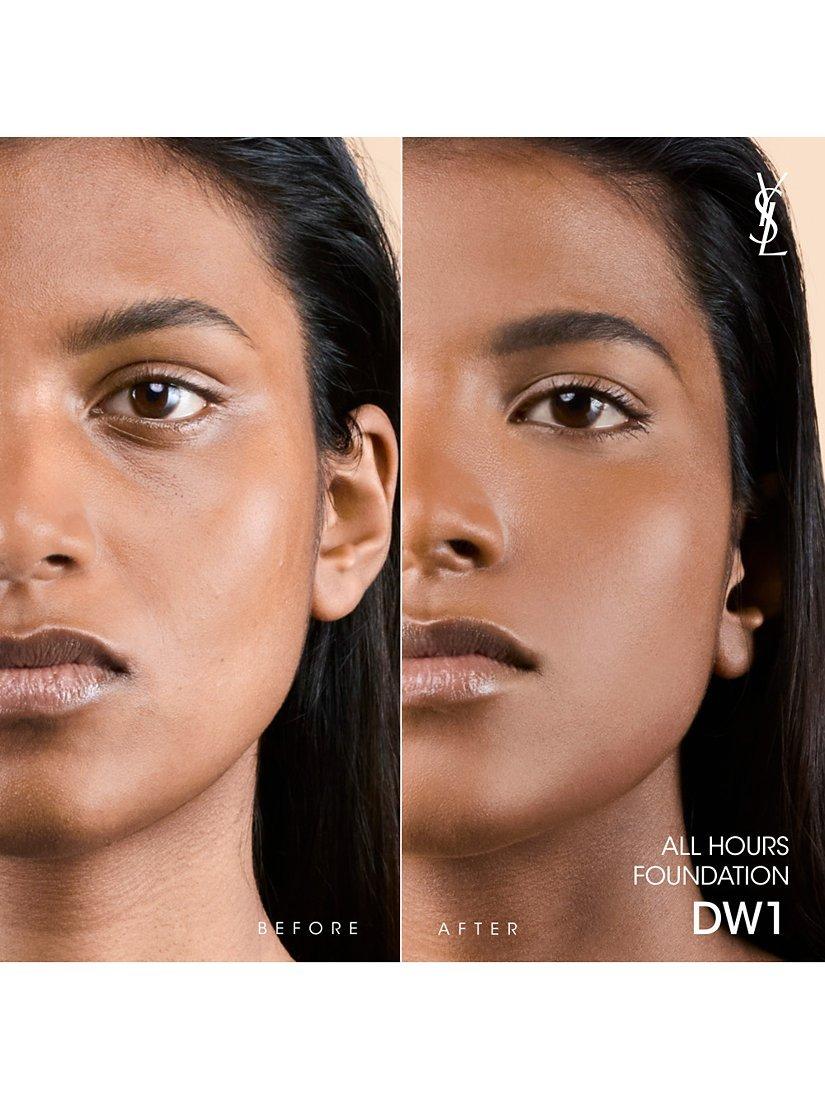 New and Improved YSL Beauty All Hours Foundation, the complexion that you can rely on all day. Now with an upgraded, breathable formula that provides up to 24H full coverage and a weightless light as air feel, as if your skin was bare.