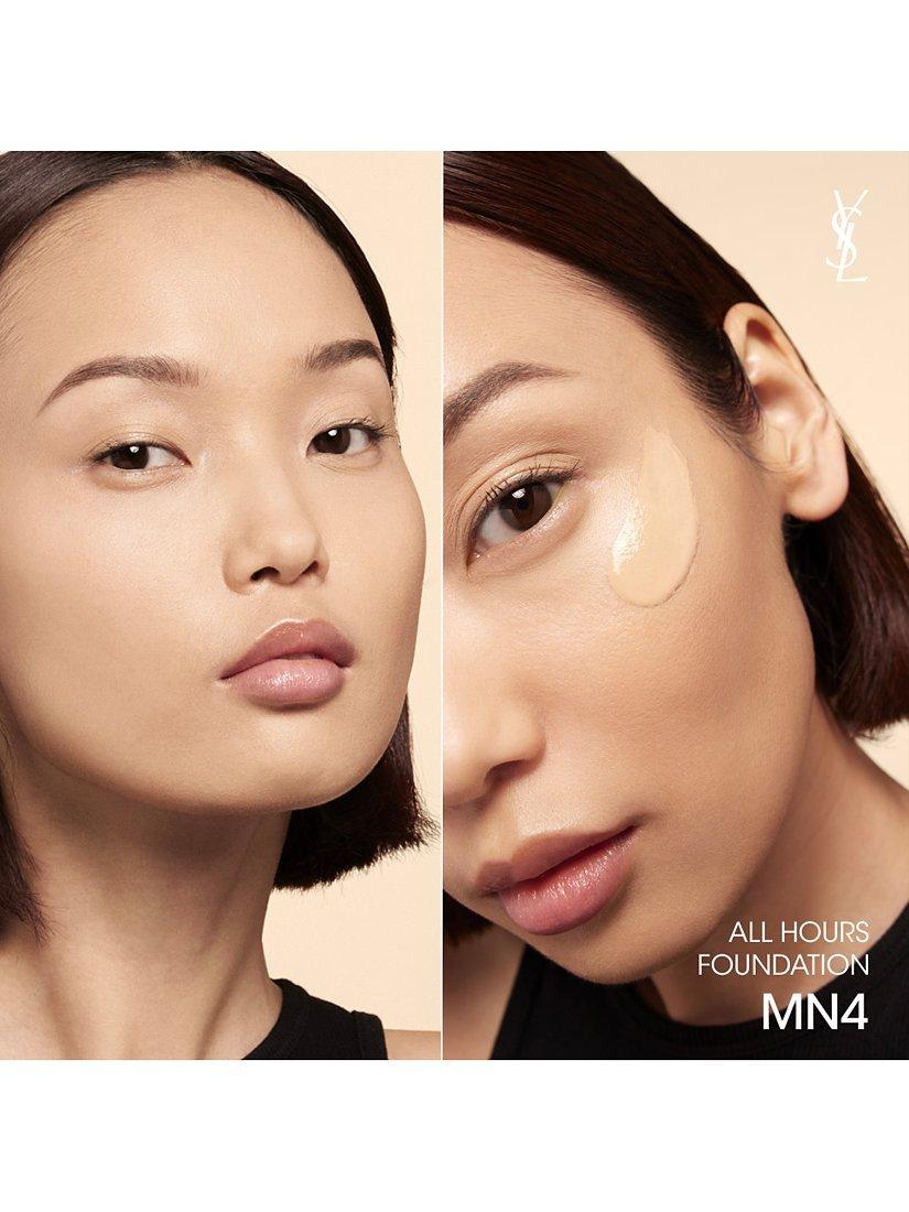 New and Improved YSL Beauty All Hours Foundation, the complexion that you can rely on all day. Now with an upgraded, breathable formula that provides up to 24H full coverage and a weightless light as air feel, as if your skin was bare.