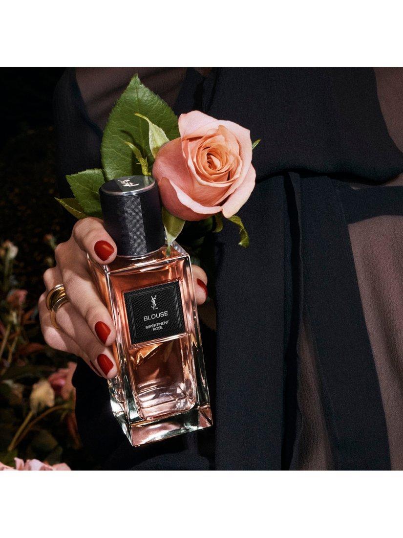 A fragrance as impertinent as Yves Saint Laurent's iconic transparent blouses, challenging conventions with a blend of sheer delicacy and bold sensuality. Like a graceful rose peeking through a veil of silk, this scent blends delicate floral notes with a captivatingly bold heart, leaving an aura of undeniable impertinence.