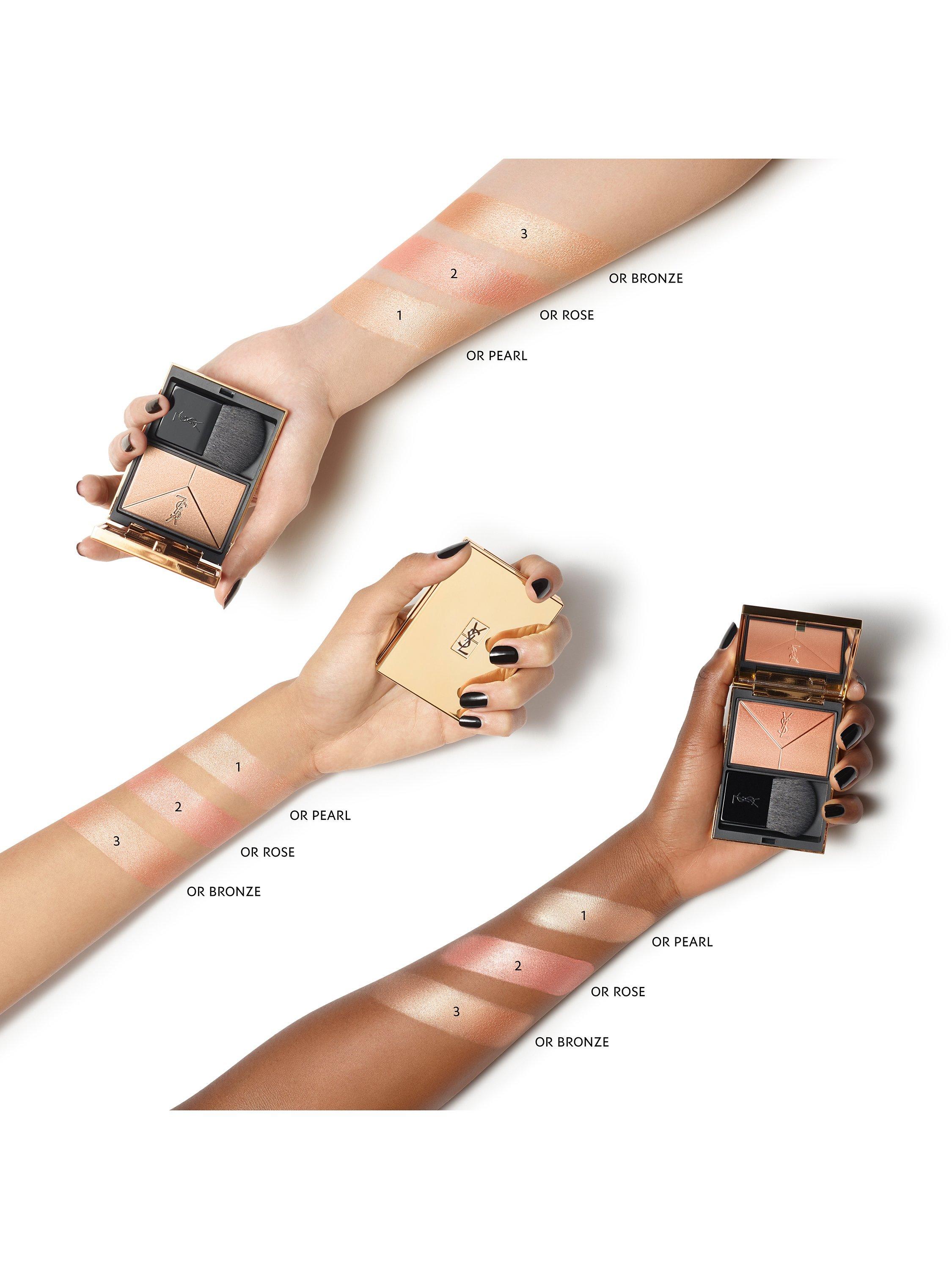 YSL’s next generation wet-process powder technology brings you Couture Highlighter, a multi-toned, high shine highlighter that creates a buildable, electrifying high shine complexion.