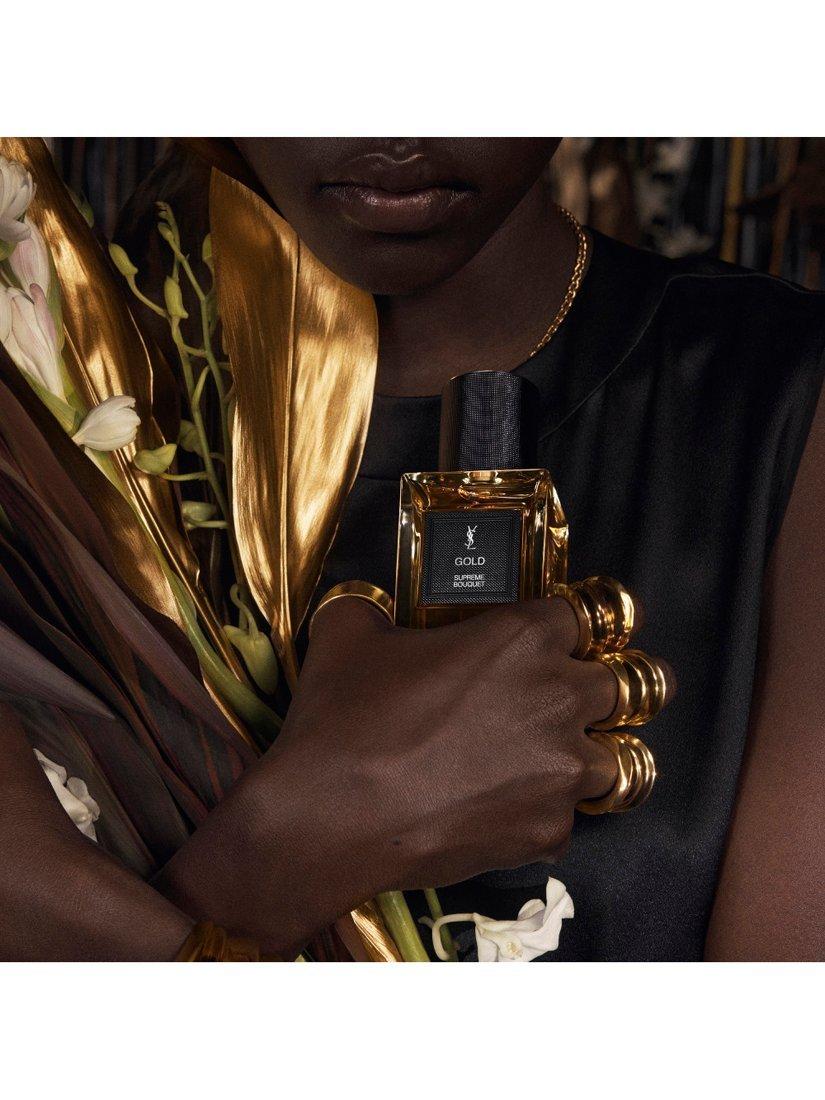 A supreme flower bouquet embodying the blaze of gold. The intoxicating tuberose encapsulates the brightest and most radiant of colours that Yves Saint Laurent called "today’s black."