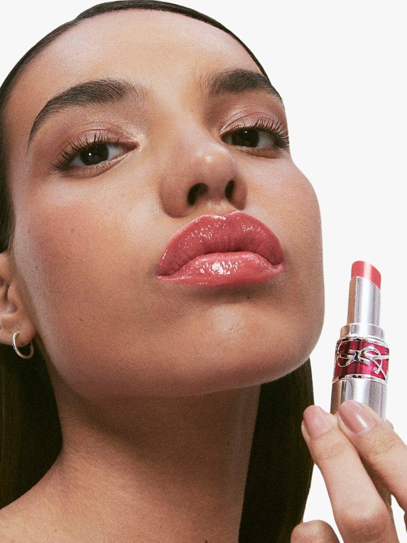 What it is: A glazed shine lip gloss in a stick with the shine of a gloss and care of a balm, for plumper, fuller-looking lips. Addictive juicy colours for the most kissable pout. The jelly-like texture melts over your lips without stickiness.