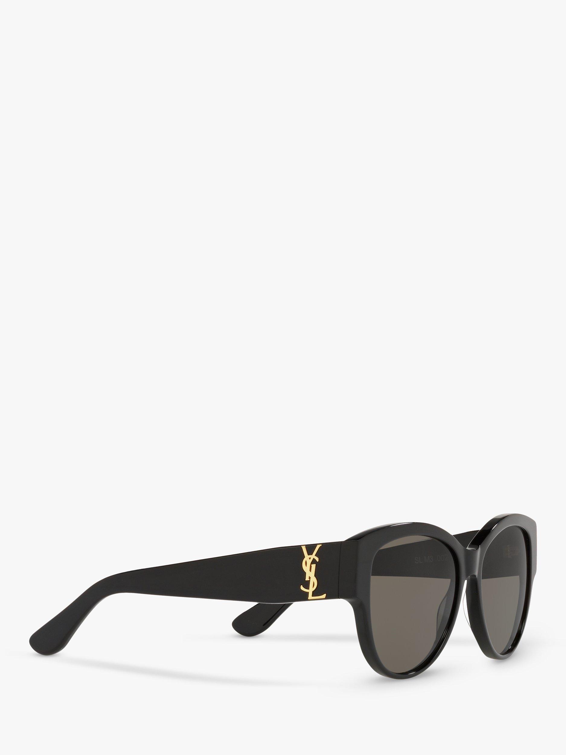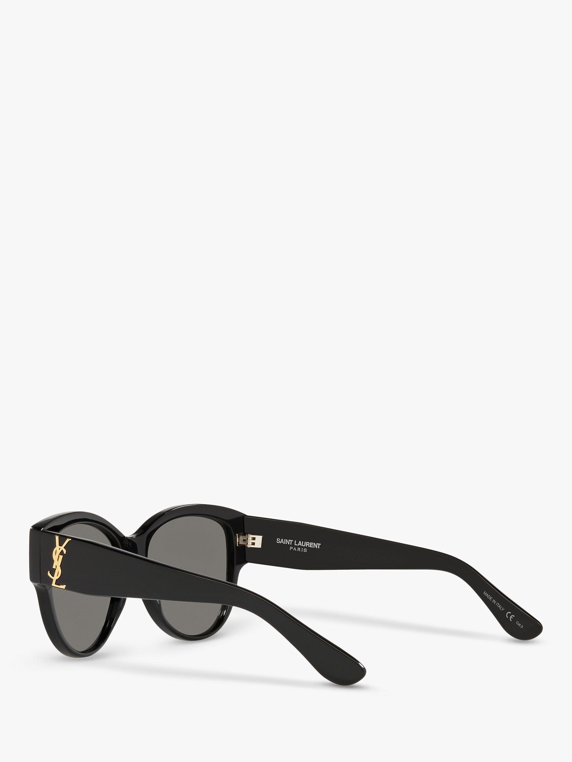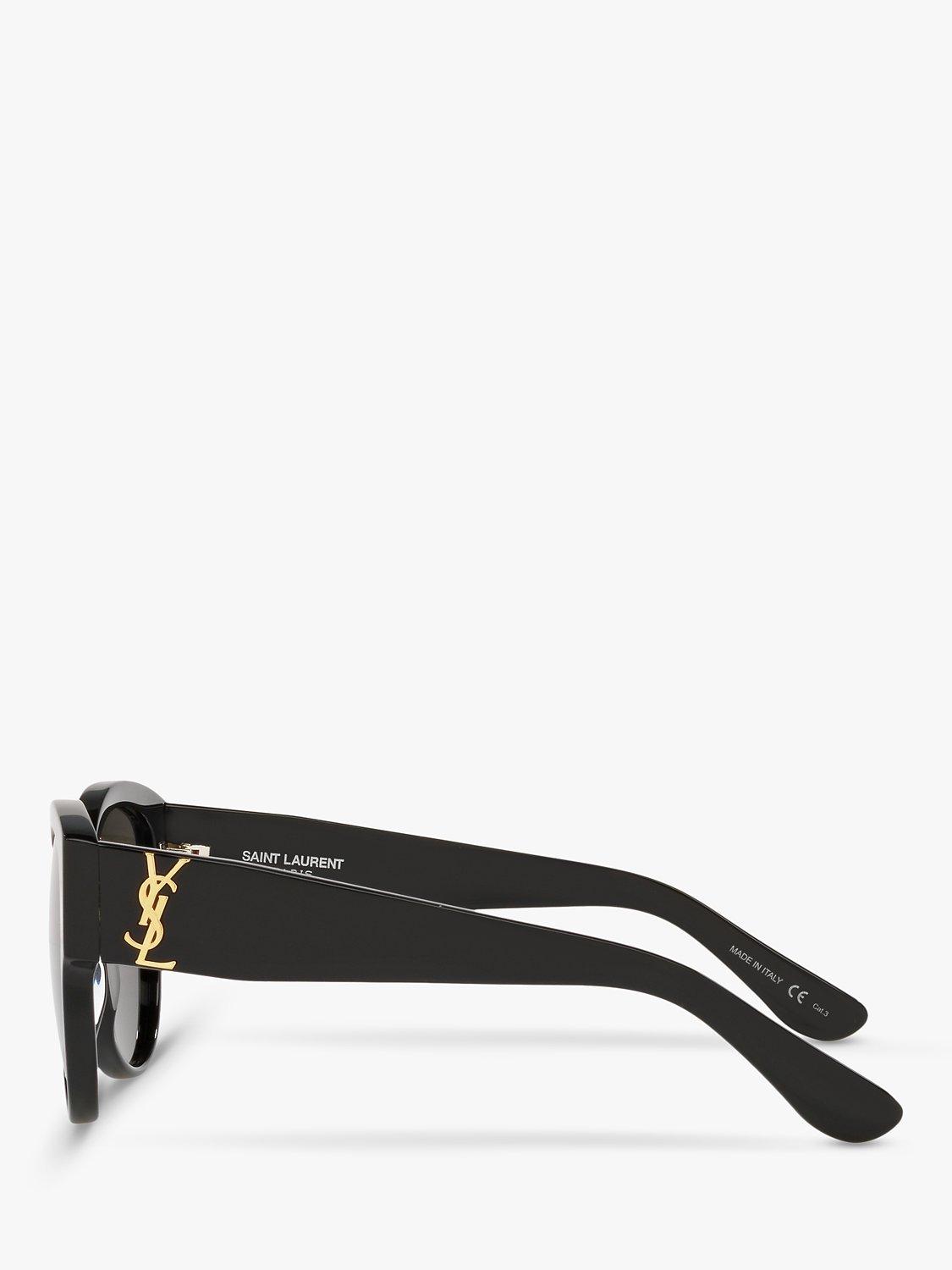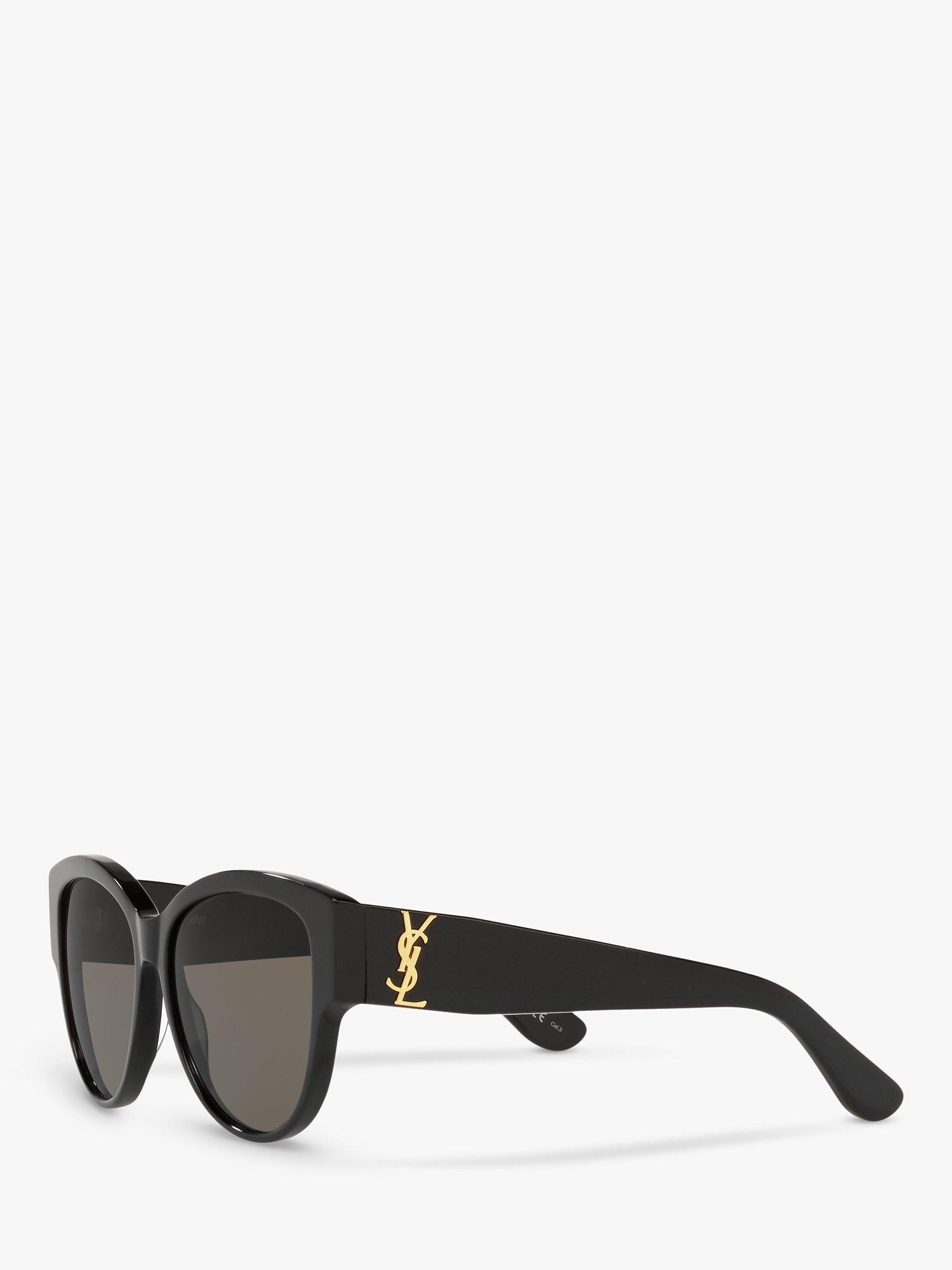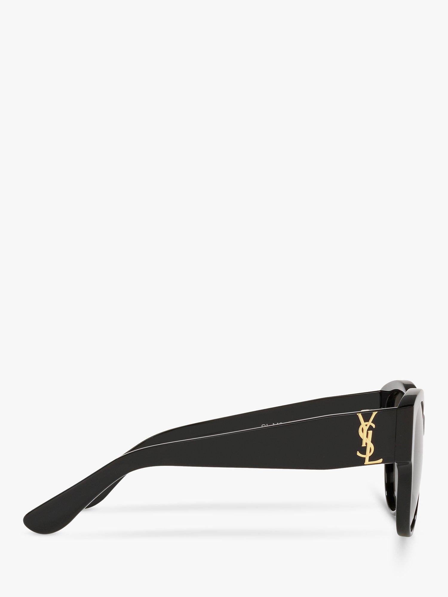 Designed with branding on the temples, this pair of oval shaped sunglasses by Yves Saint Laurent highlight the confident square features of the face.