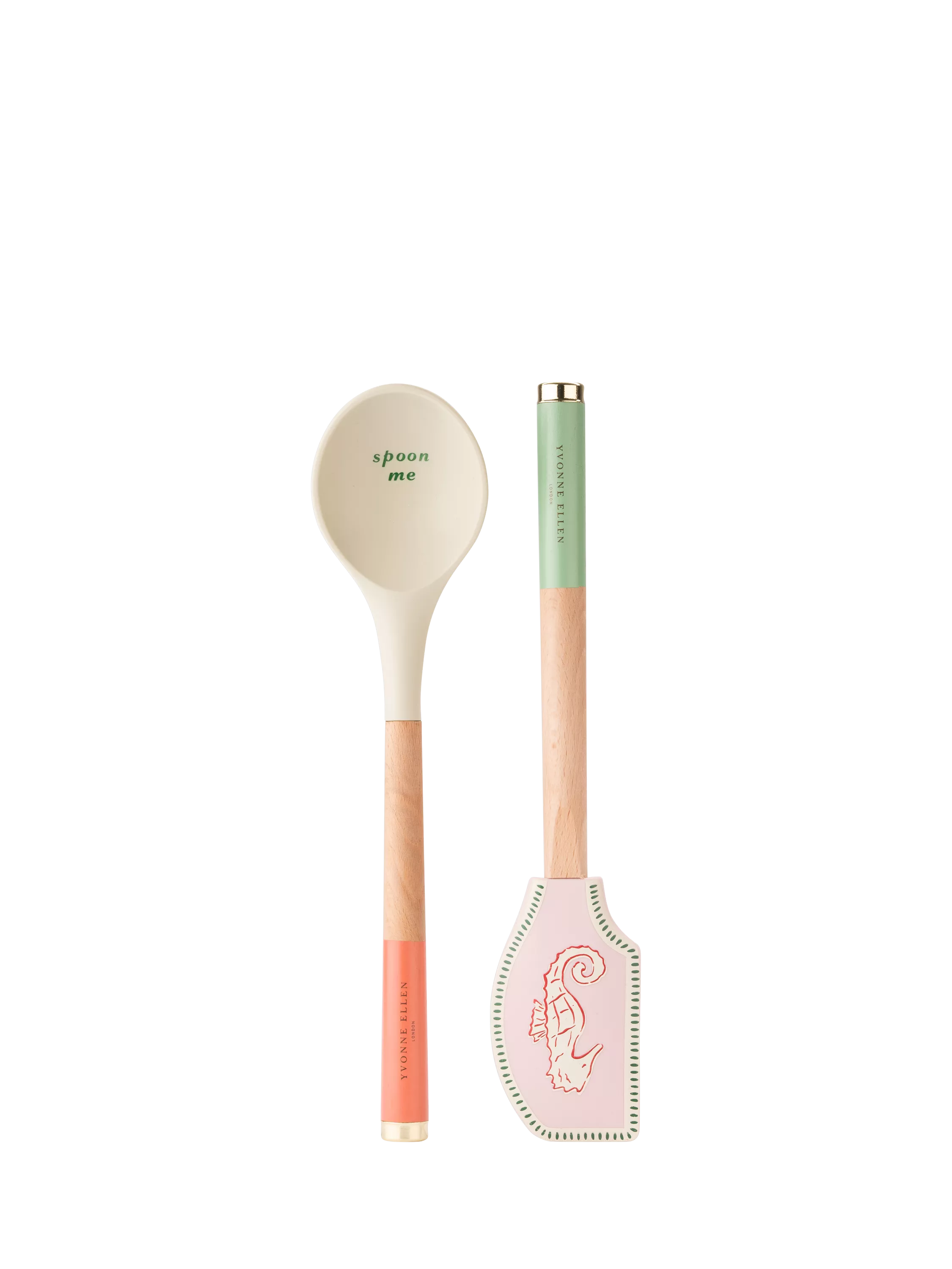 Yvonne EllenBeech Wood Spoon & Spatula with Silicone Heads, Set of 2