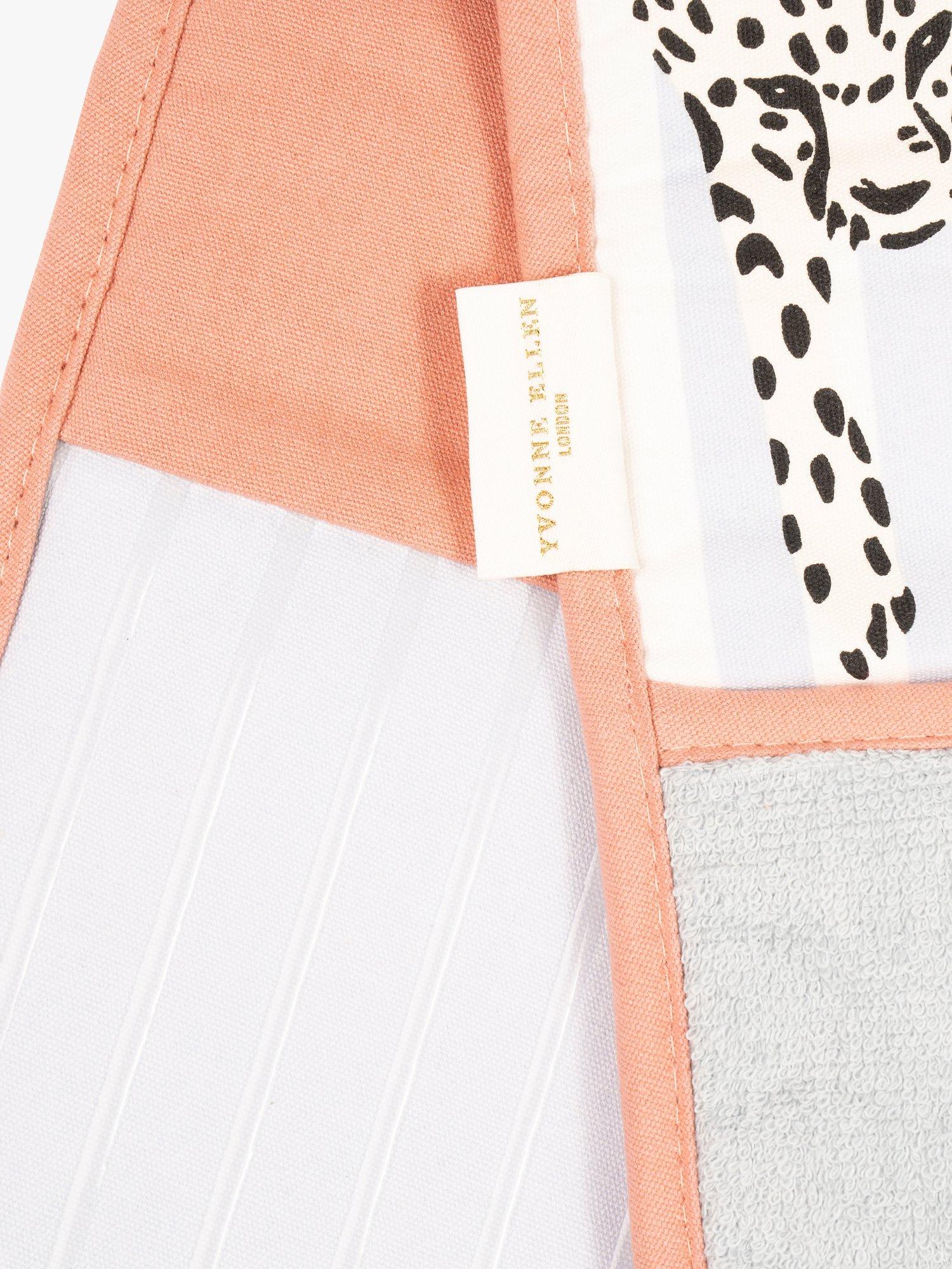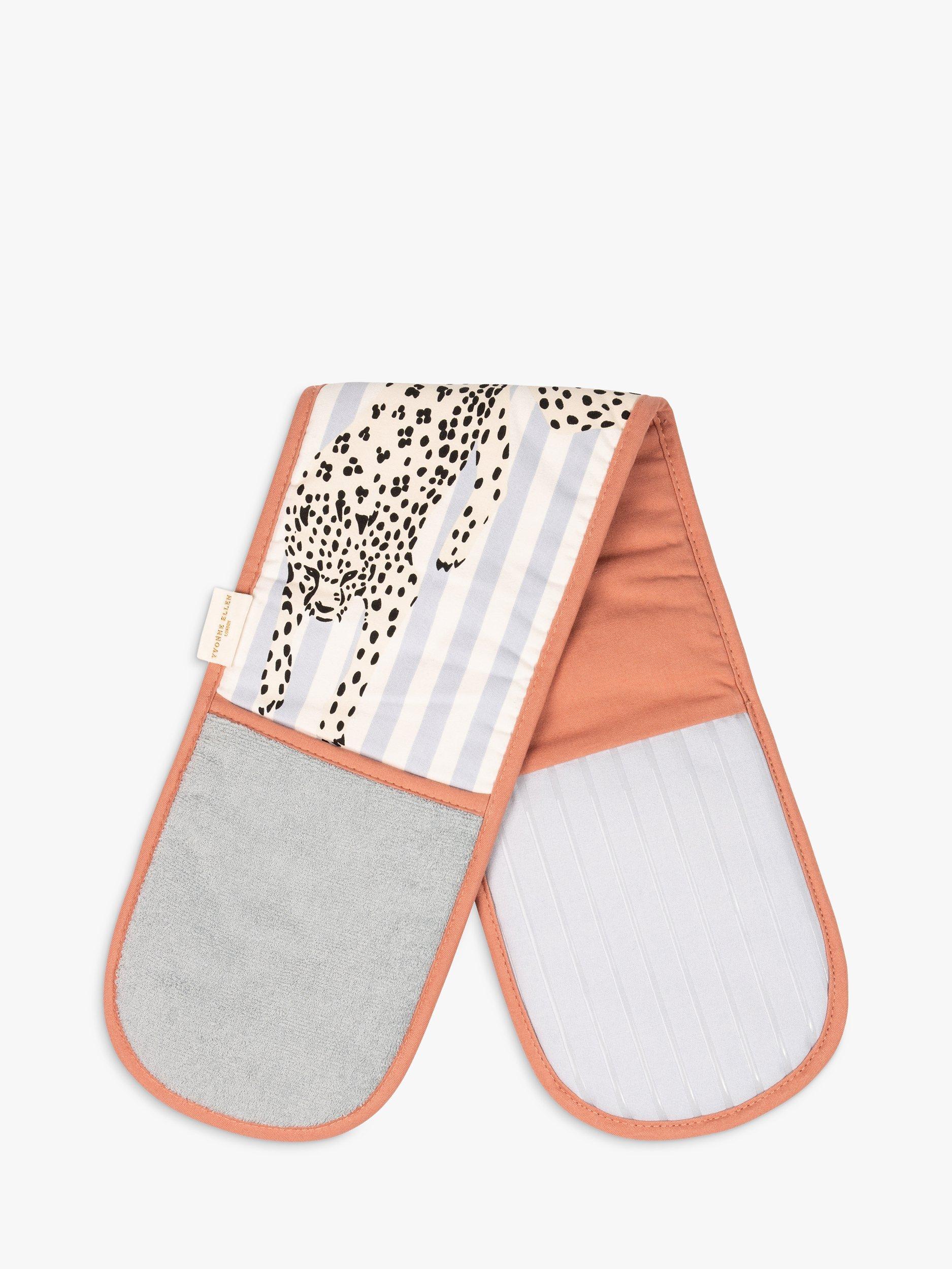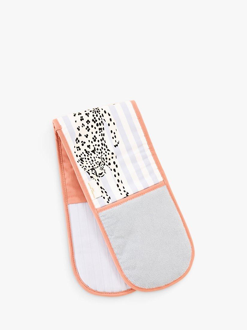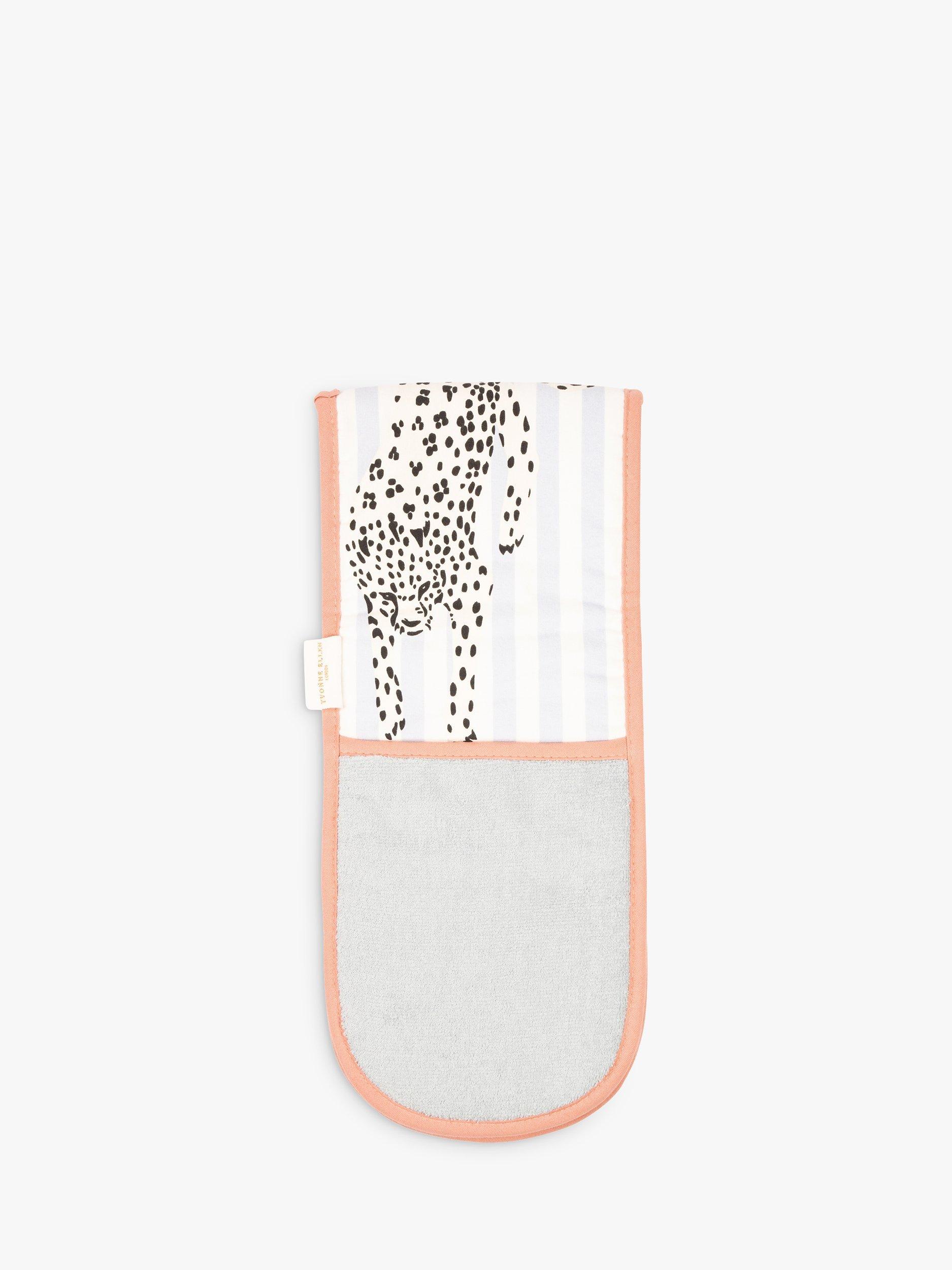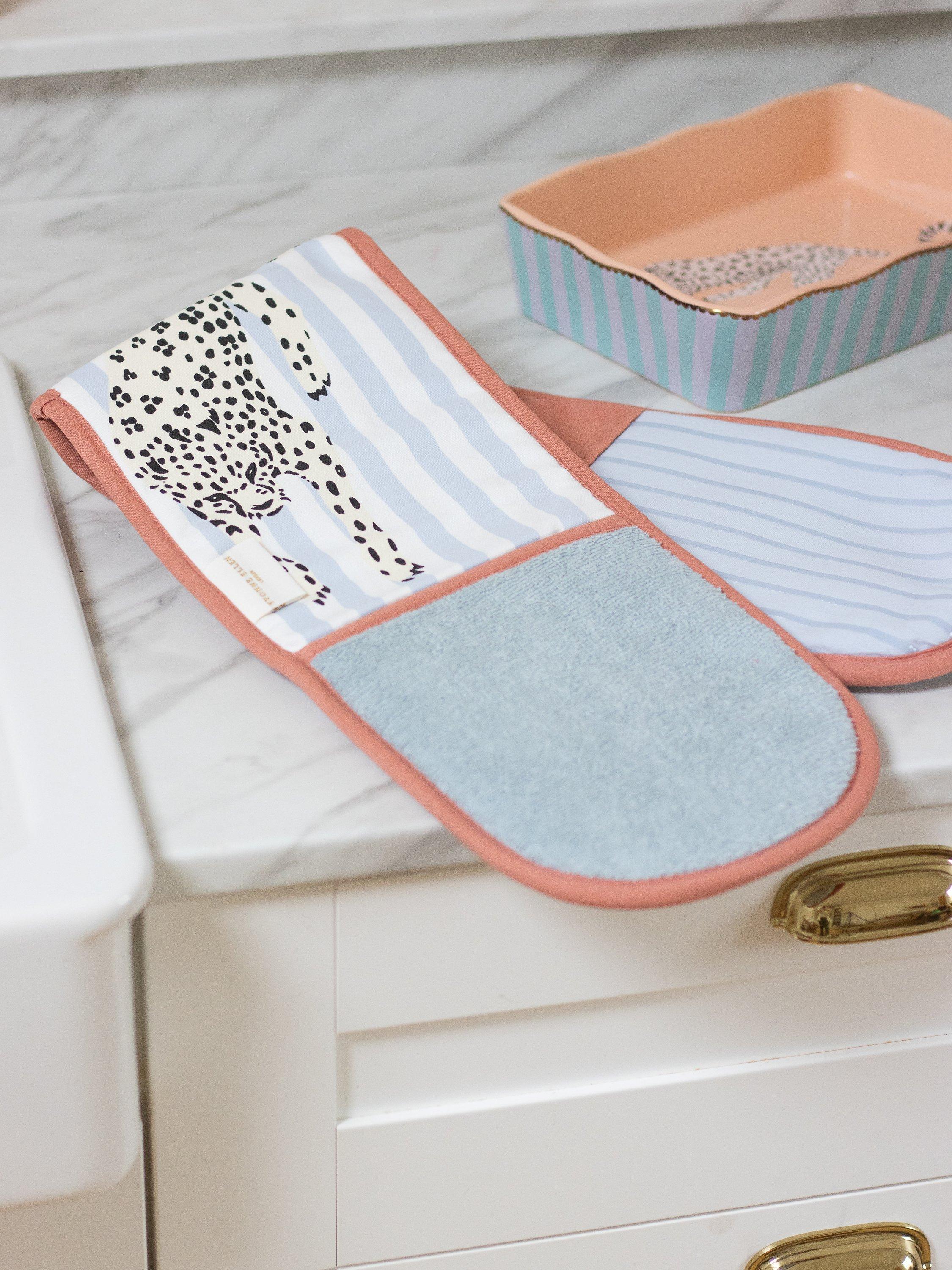 Update your kitchen textiles with this bold double oven glove featuring stripes and Yvonne Ellen's cheetah design. Made of cotton with an insulated filling to protect hands from heat, it's machine washable for everyday use. Team it with the matching kitchen apron.