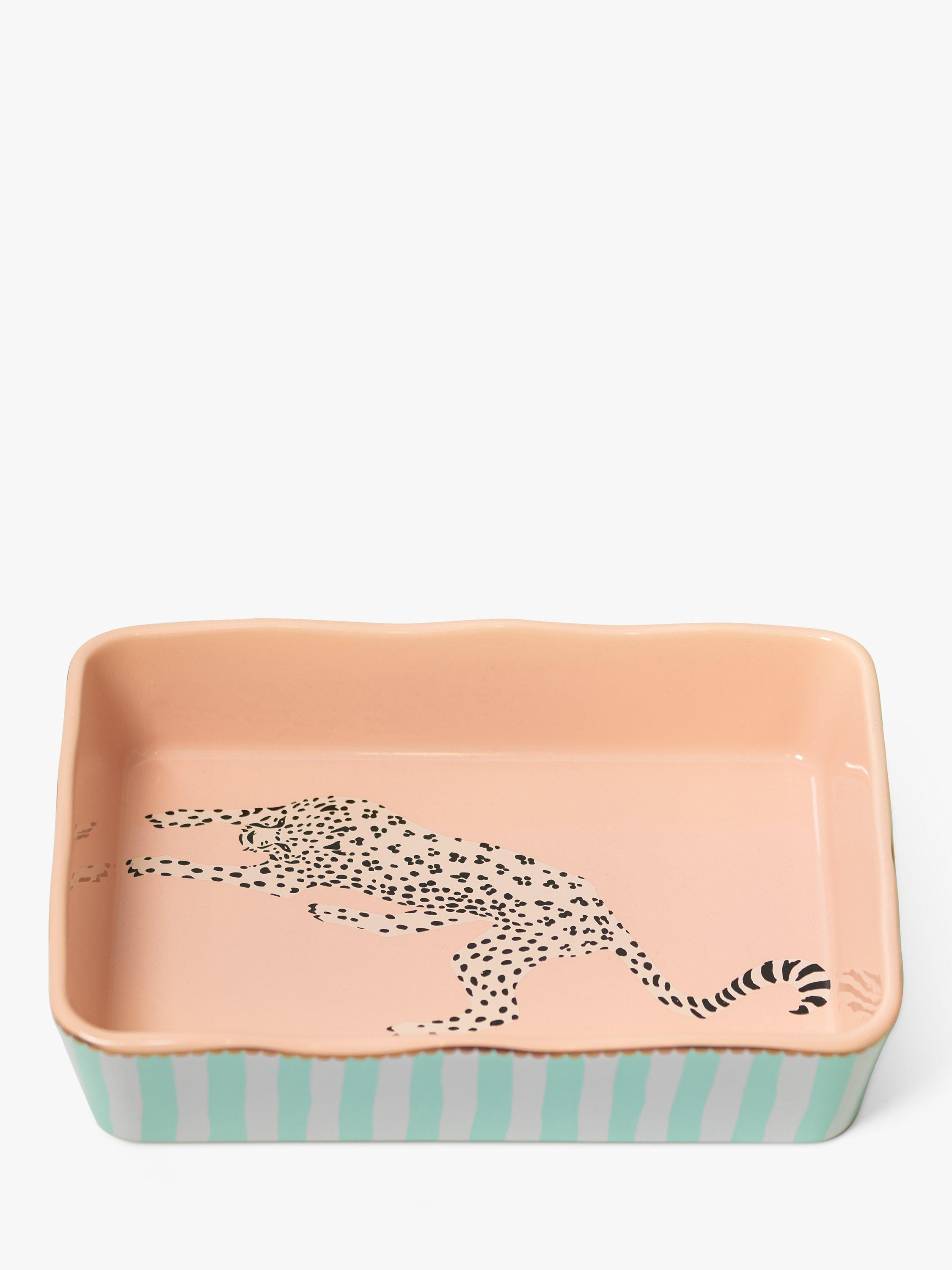 Raise your oven-to-table game with this rectangular roaster, a colourful striped design with a cheetah illustration inside from Yvonne Ellen. Made of chip-resilient stoneware, it's oven safe to 200°C and dishwasher-safe for easy cleaning.