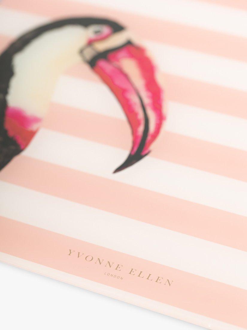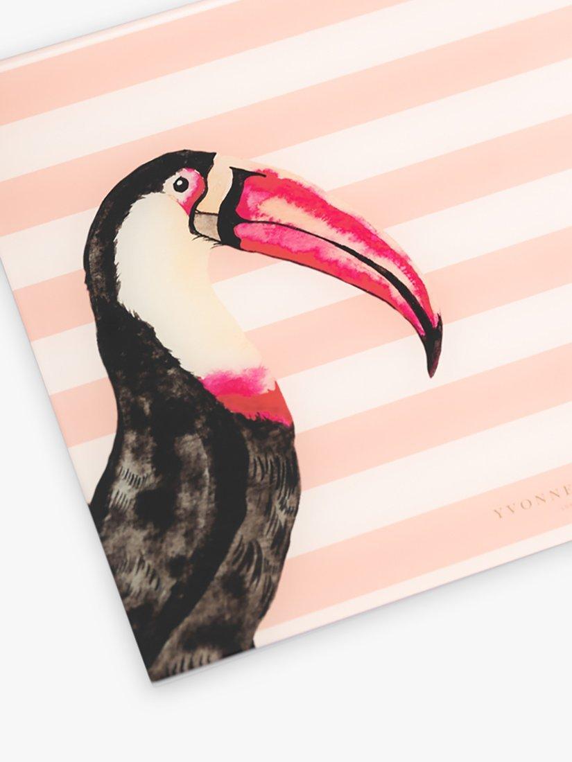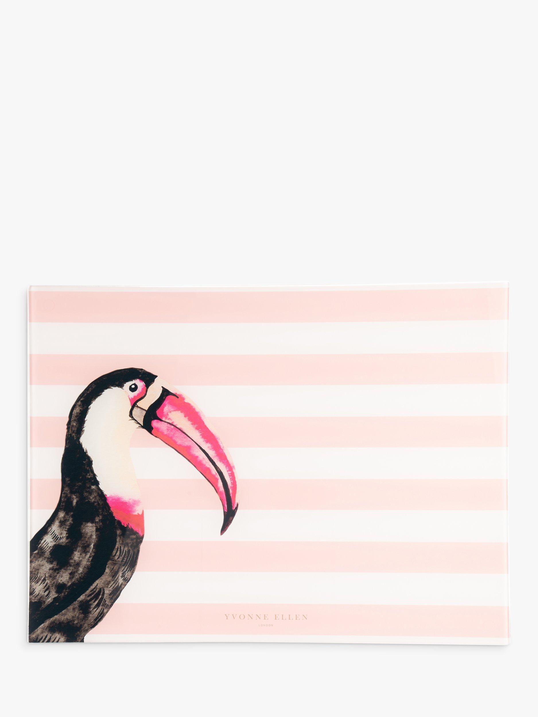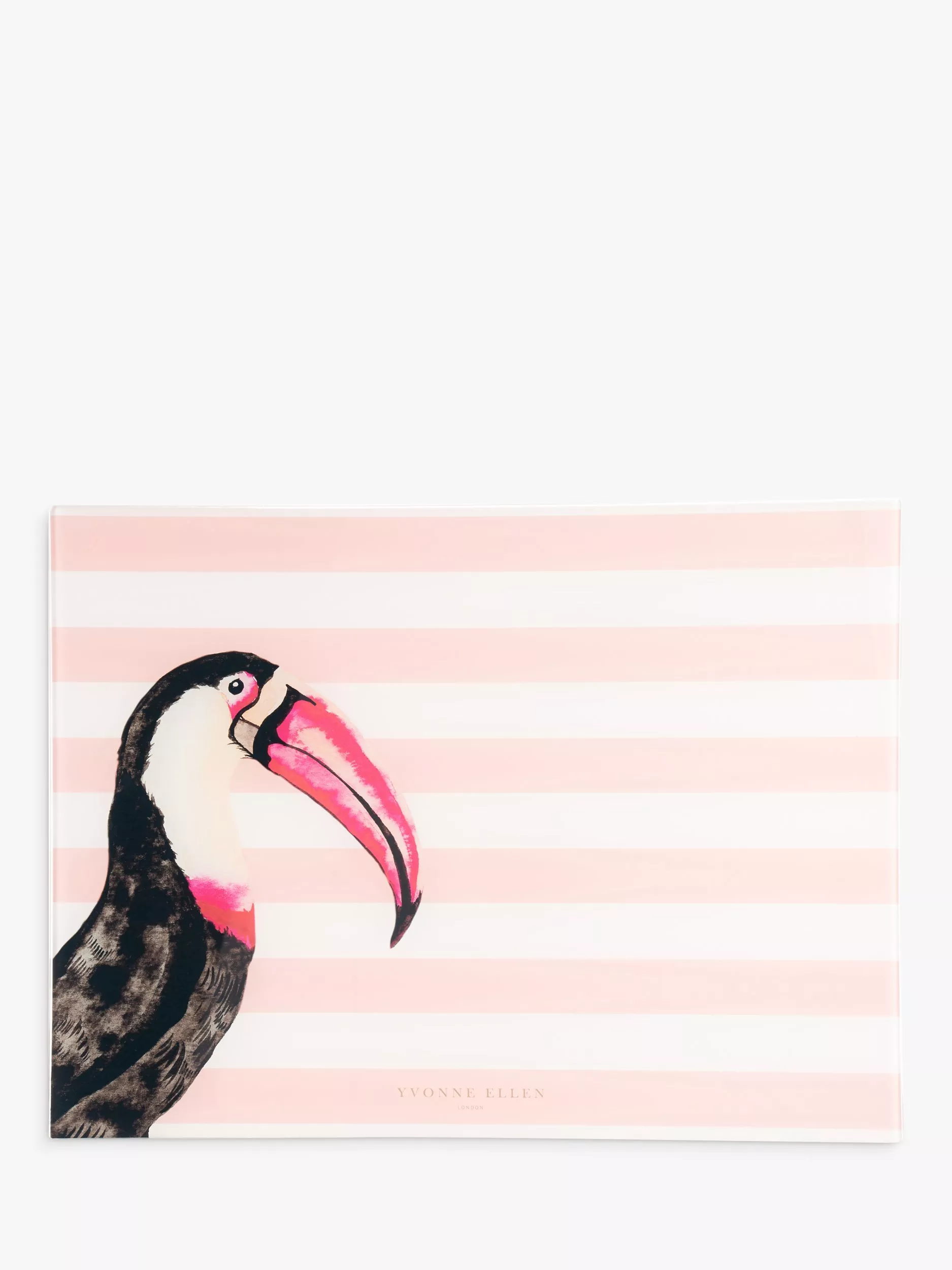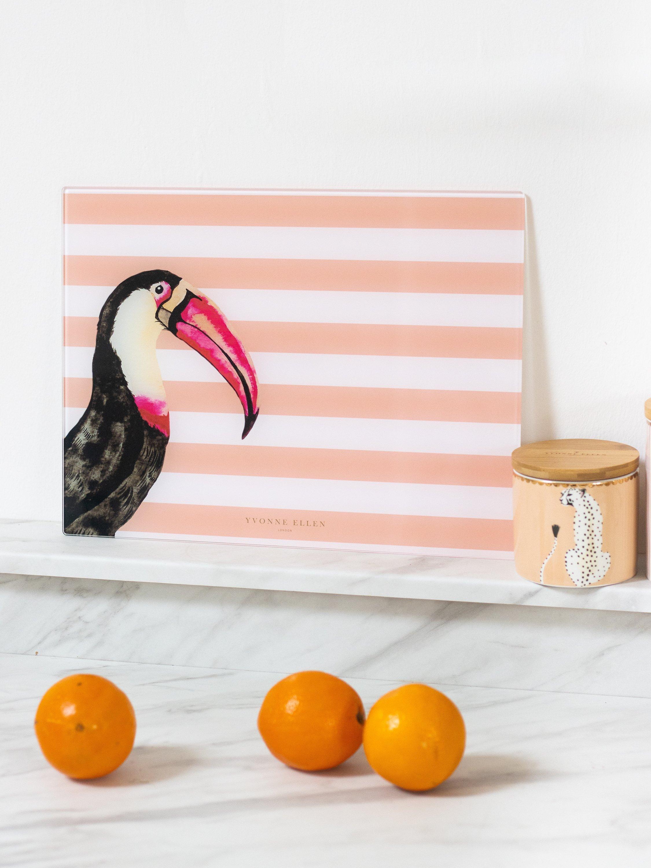 Made of tempered glass for strength, this worktop saver keeps your kitchen countertop mess-free. A colourful design featuring stripes and Yvonne Ellen's toucan illustration.