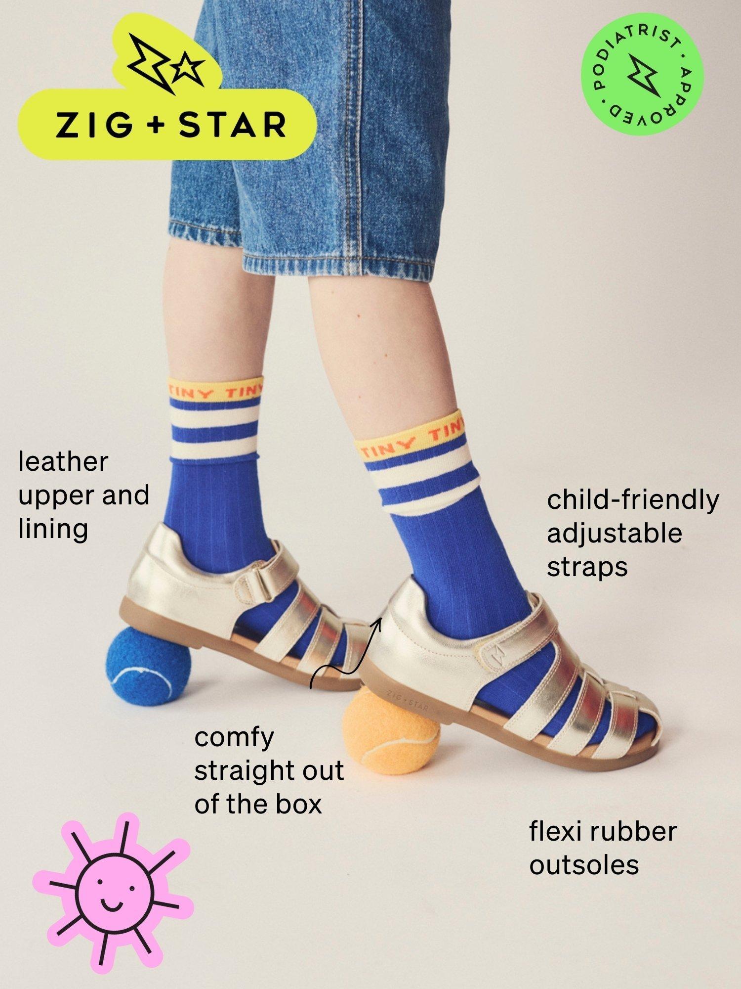 Podiatrist approved, the Cosmic is a cool, yet practical fisherman-style kids' sandal, that will take you from the forest to the festival. The caged design and padded back counter offers protection and support, while the child-friendly, adjustable strap makes it easy to get the perfect fit on feet of every shape and size. The Cosmic is designed to have generous fit that will leave plenty of space for growth and wriggle room, so no need to size up.