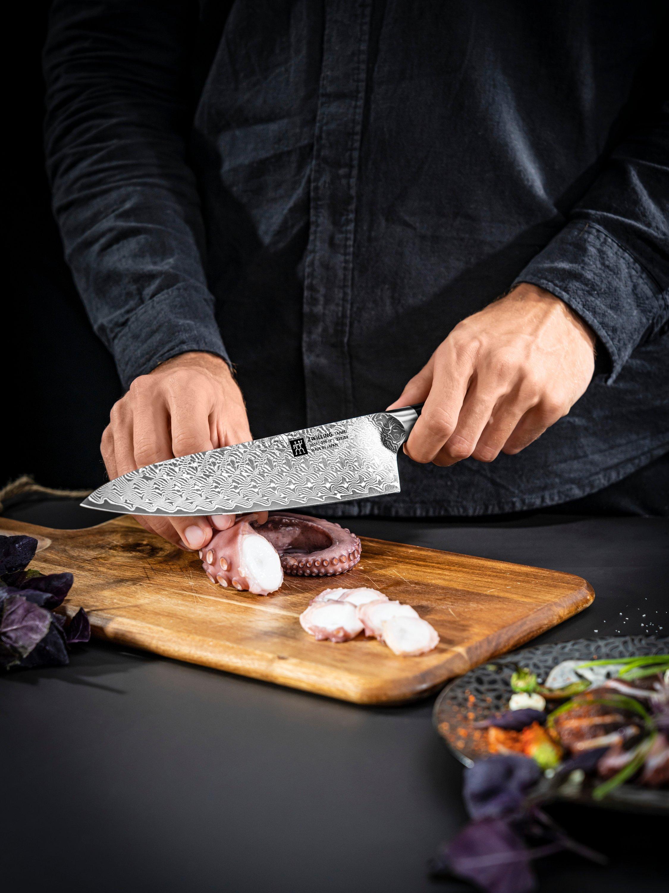 ZWILLING Tanrei knives achieve a degree of hardness rarely seen in kitchen knives, but without compromising on flexibility. Tanrei ultra-hard knife blades boast extra-fine honing using the Honbazuke method, hand-ground and polished by master craftsmen to maximise sharpness and finish.